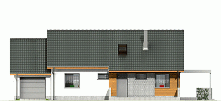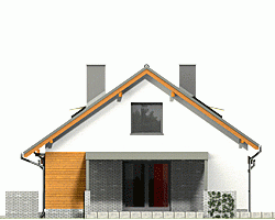 Hirek Trend to projekt Hirek w nowoczesnej szacie, z lekko powiększonym zadaszeniem tarasu. Jest to propozycja niewielkiego domu parterowego z poddaszem do adaptacji na cele użytkowe. Nowoczesny, bardzo prosty dom dla 3-4-osobowej rodziny. Budynek na niewielkiej powierzchni mieści wszystkie potrzebne pomieszczenia: 3 sypialnie, salon z wyjściem na zadaszony taras, kuchnię ze spiżarnią, pralnię z przejściem do garażu, WC, łazienkę, oraz kotłownię na paliwo stałe z wejściem zarówno od ogrodu jak i z domu poprzez garaż. W holu zlokalizowano wygodne schody na poddasze, gdzie po adaptacji na cele użytkowe, zmieszczą się np. dwa pokoje oraz składzik. Dom ten dzięki niewielkim gabarytom, prostej bryle, dwuspadowym dachu oraz nieskomplikowanym rozwiązaniom konstrukcyjnym daje możliwość niedrogiej realizacji.