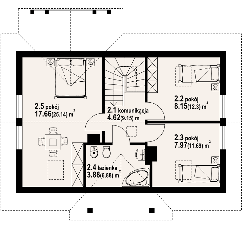 - KondygnacjeParterowy, z poddaszem