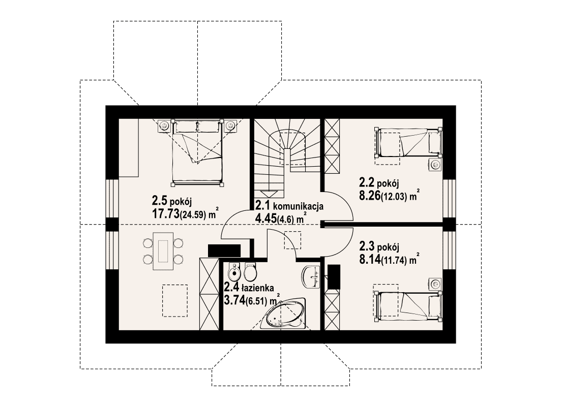 - KondygnacjeParterowy, z poddaszem