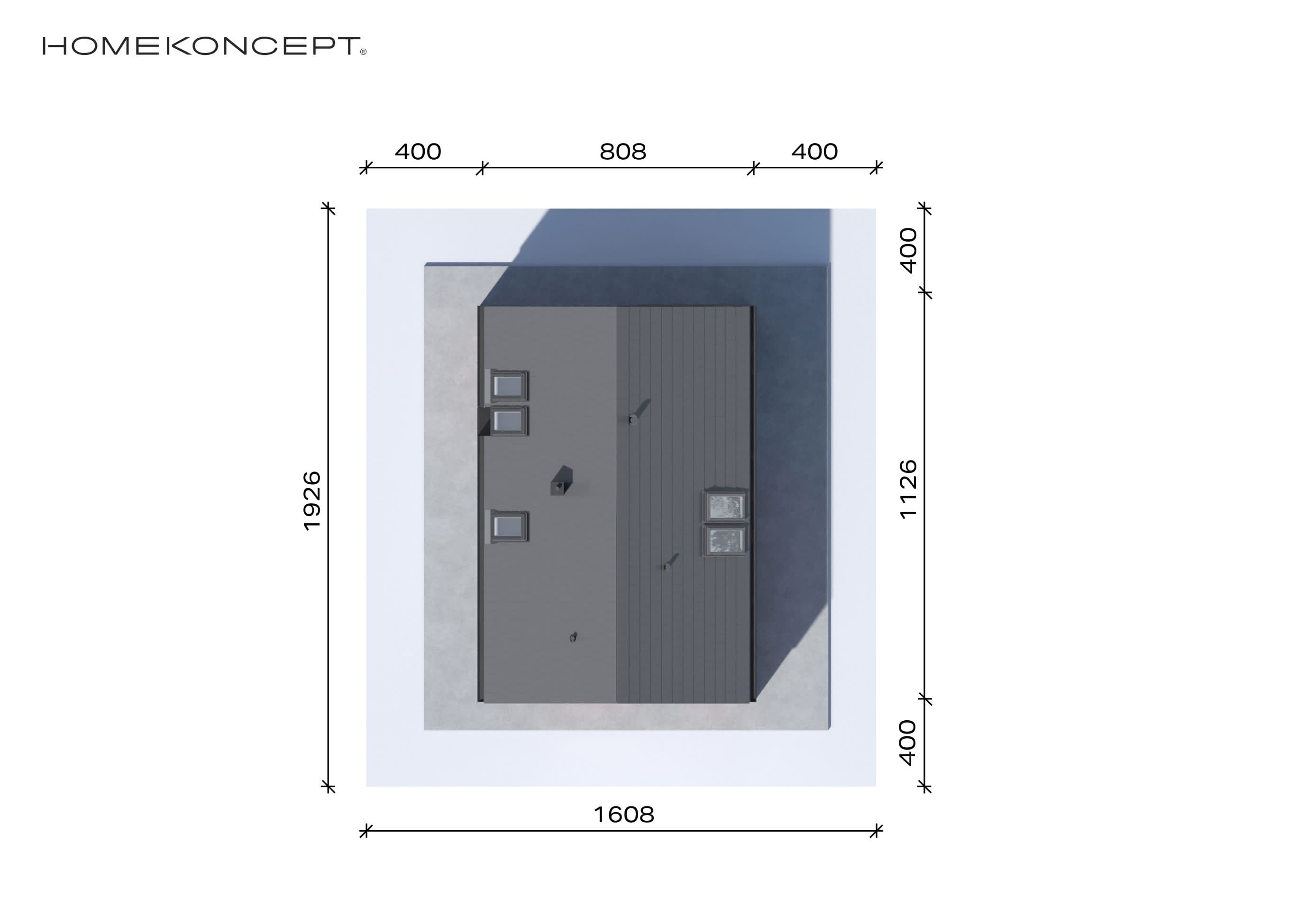 - Minimalne wymiary działki19.26 x 16.08m