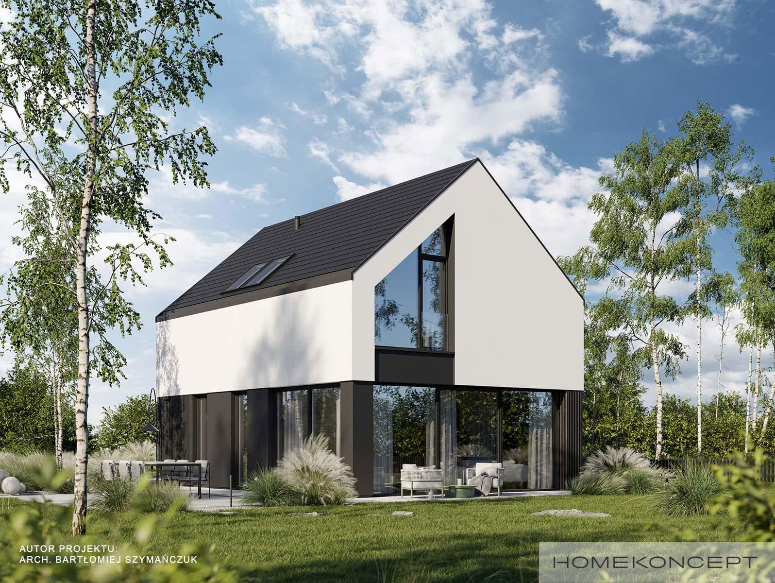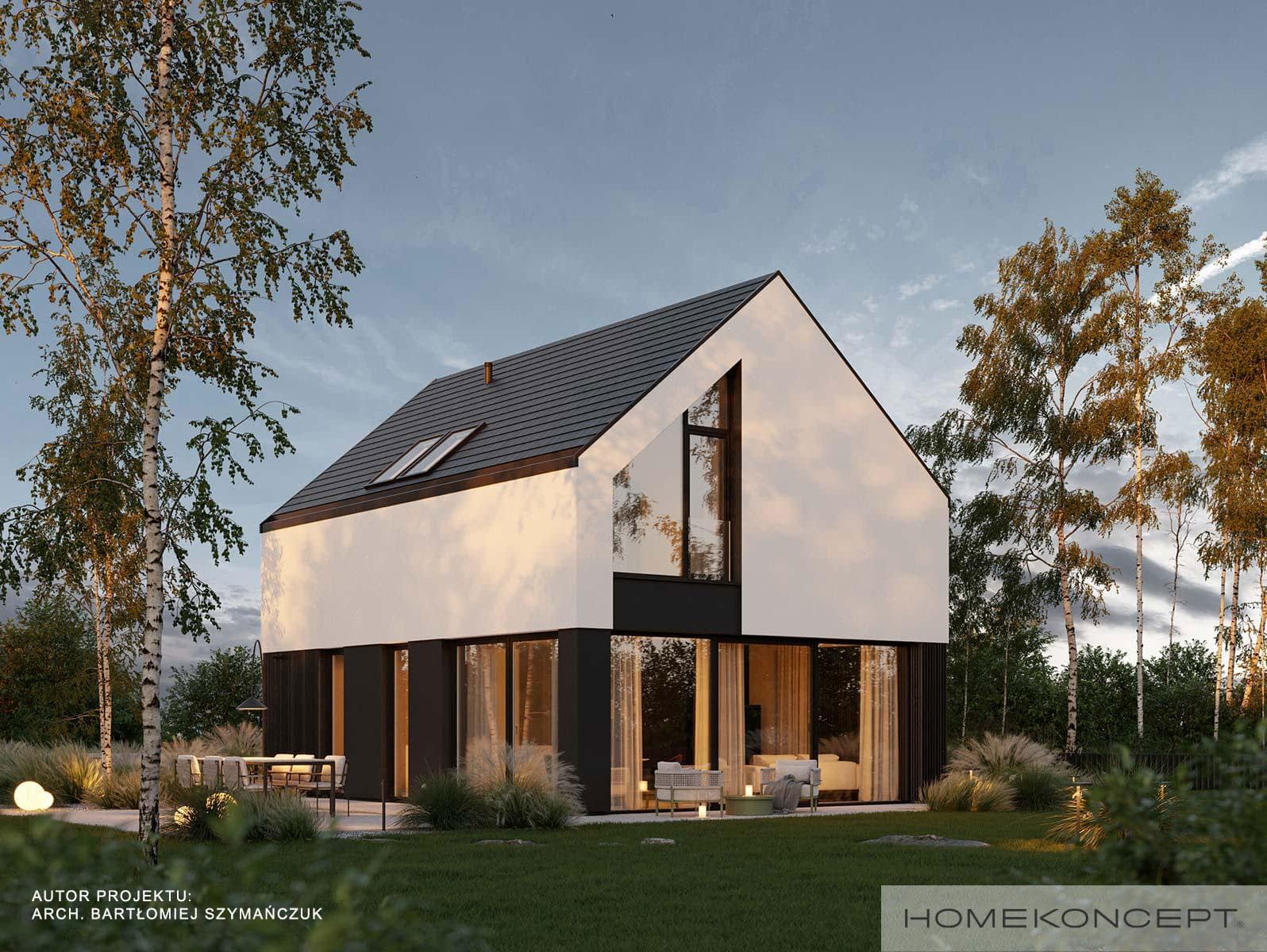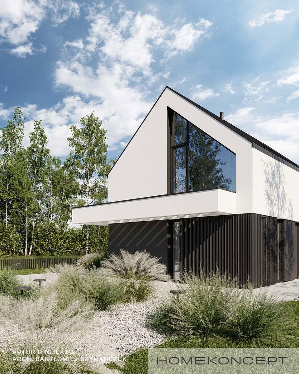 Elewacja: tynk silikonowy połączony z deską elewacyjną lamelową