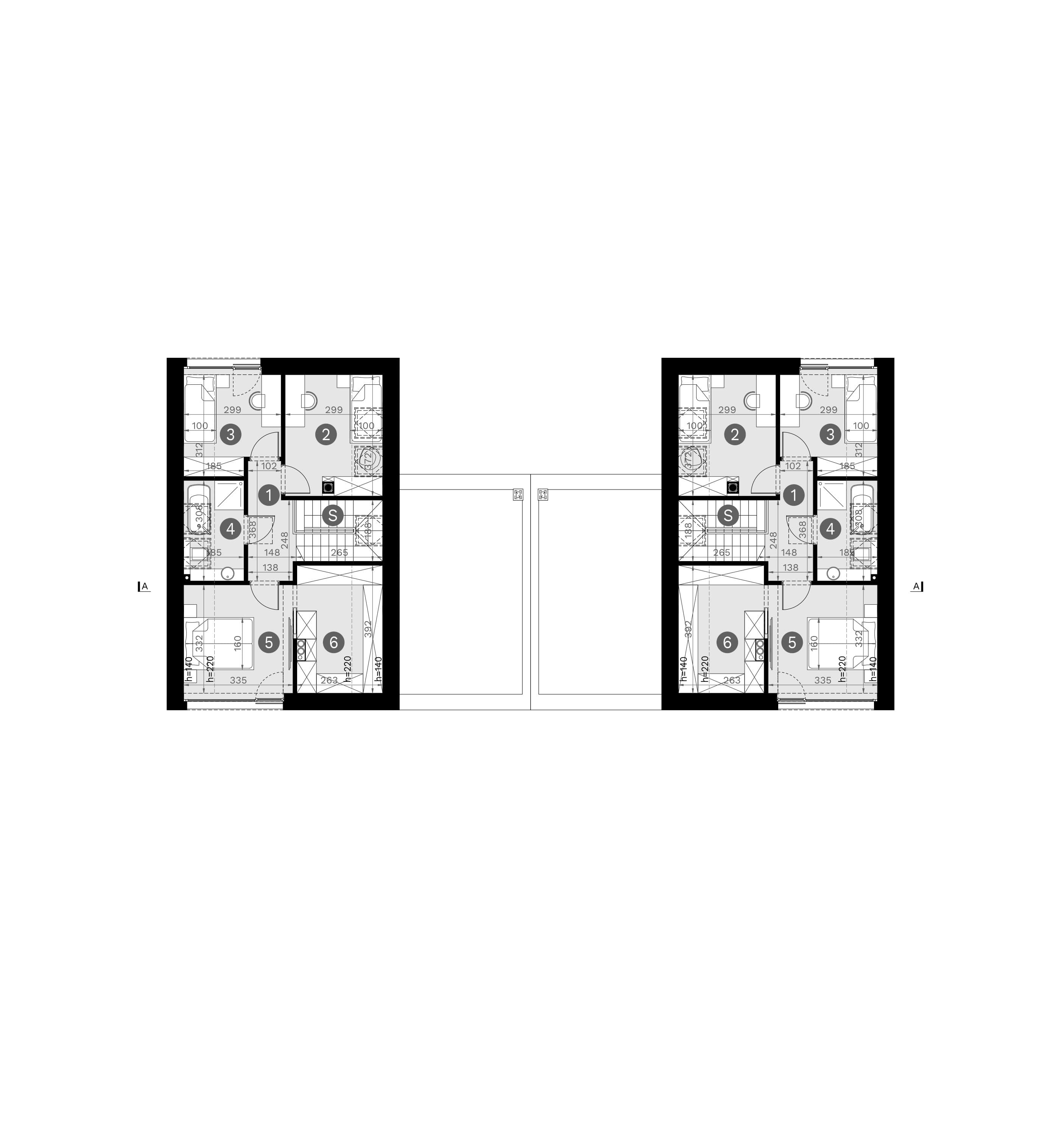 - rzuty poziome poszczególnych kondygnacji (parter, poddasze lub piętro),