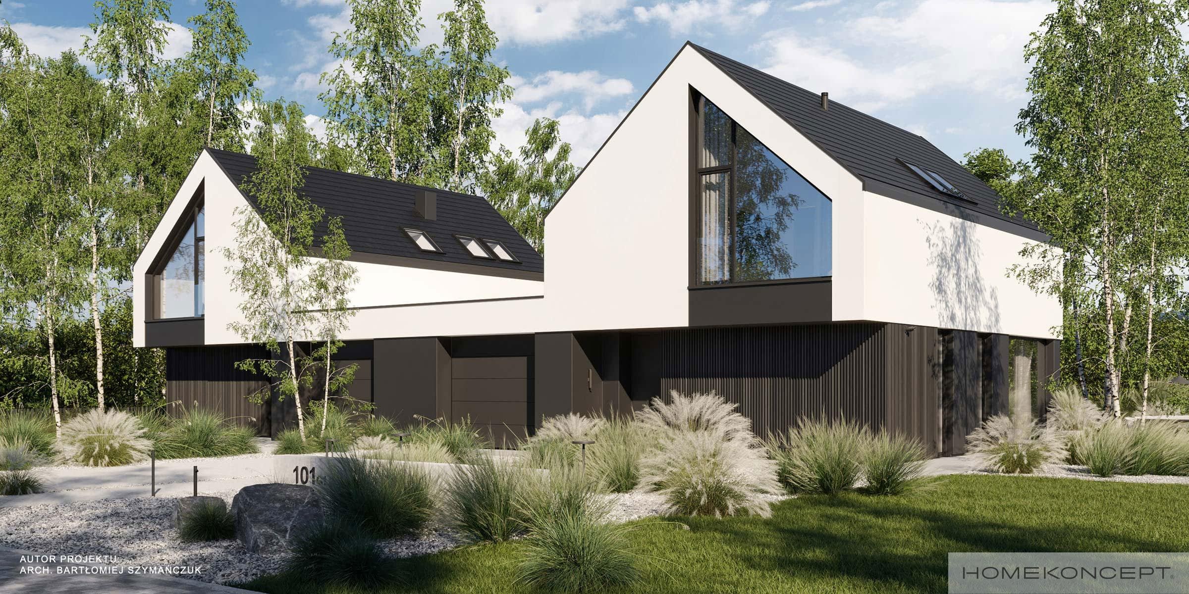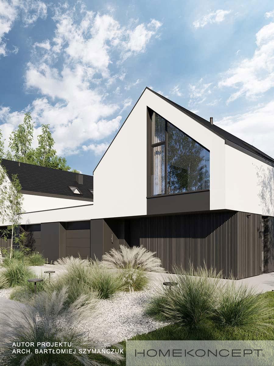 Elewacja: tynk silikonowy połączony z deską elewacyjną lamelową