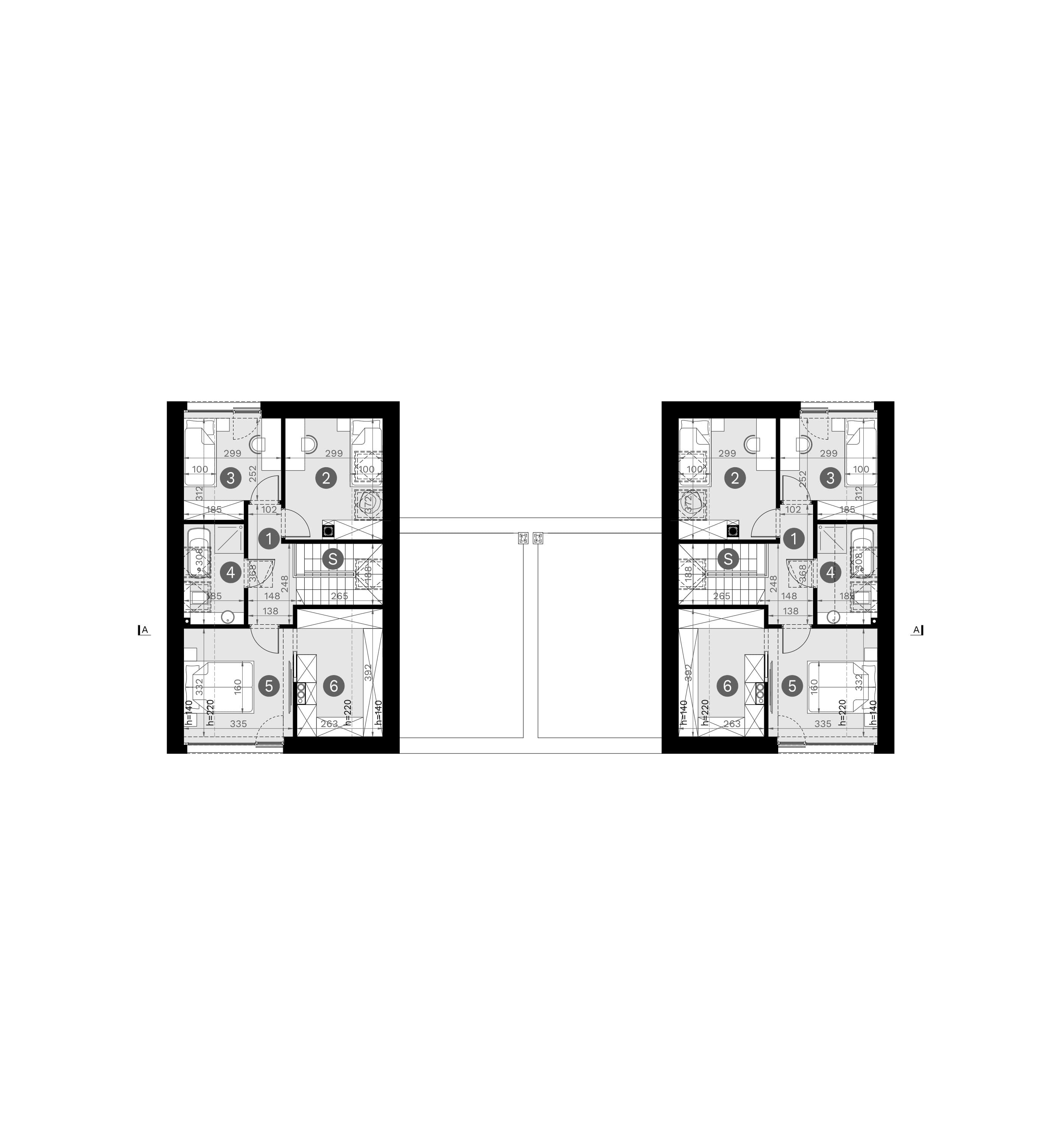- rzuty poziome poszczególnych kondygnacji (parter, poddasze lub piętro),