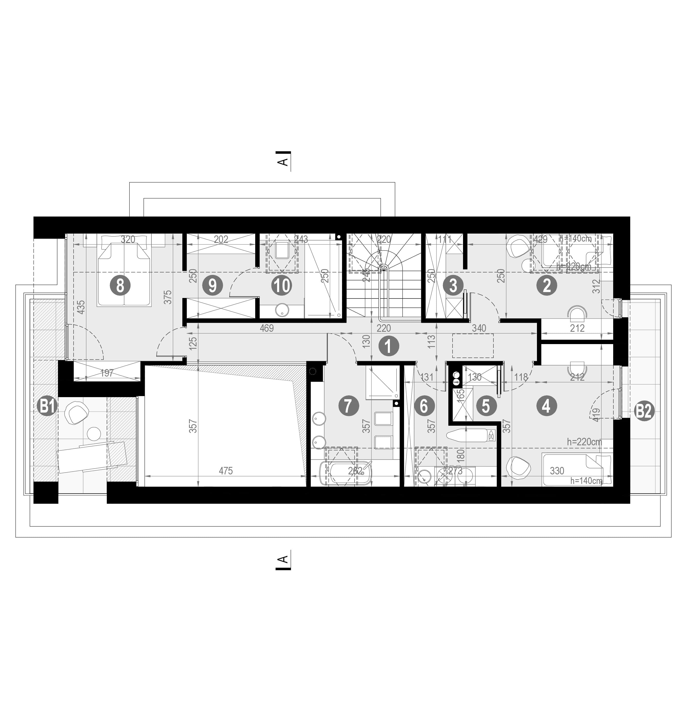 - wszystkie niezbędne przekroje przez całość oraz charakterystyczne fragmenty budynku,