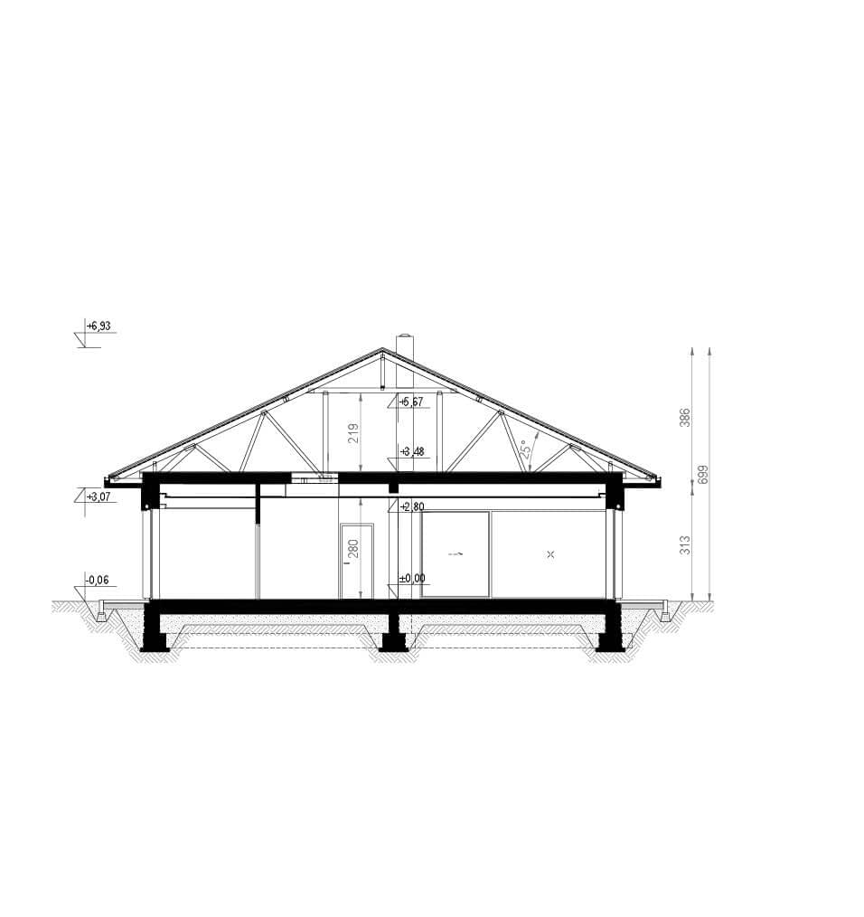 - zmiana wymiarów fundamentów wynikająca z dostosowania obiektu do warunków gruntowych i głębokości przemarzania gruntu oraz zmiana ław na płytę fundamentową