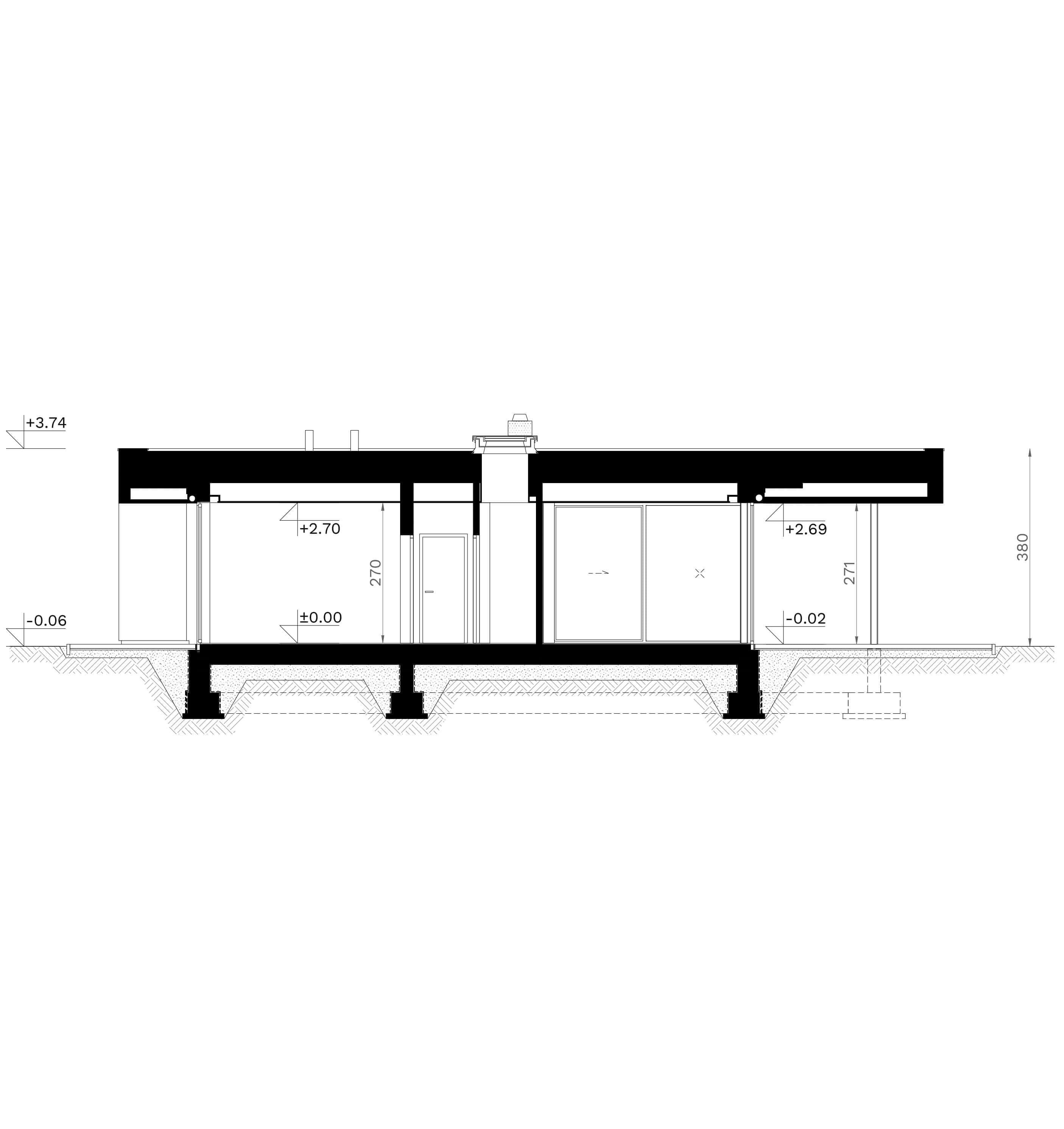 - zmiana wymiarów fundamentów wynikająca z dostosowania obiektu do warunków gruntowych i głębokości przemarzania gruntu oraz zmiana ław na płytę fundamentową