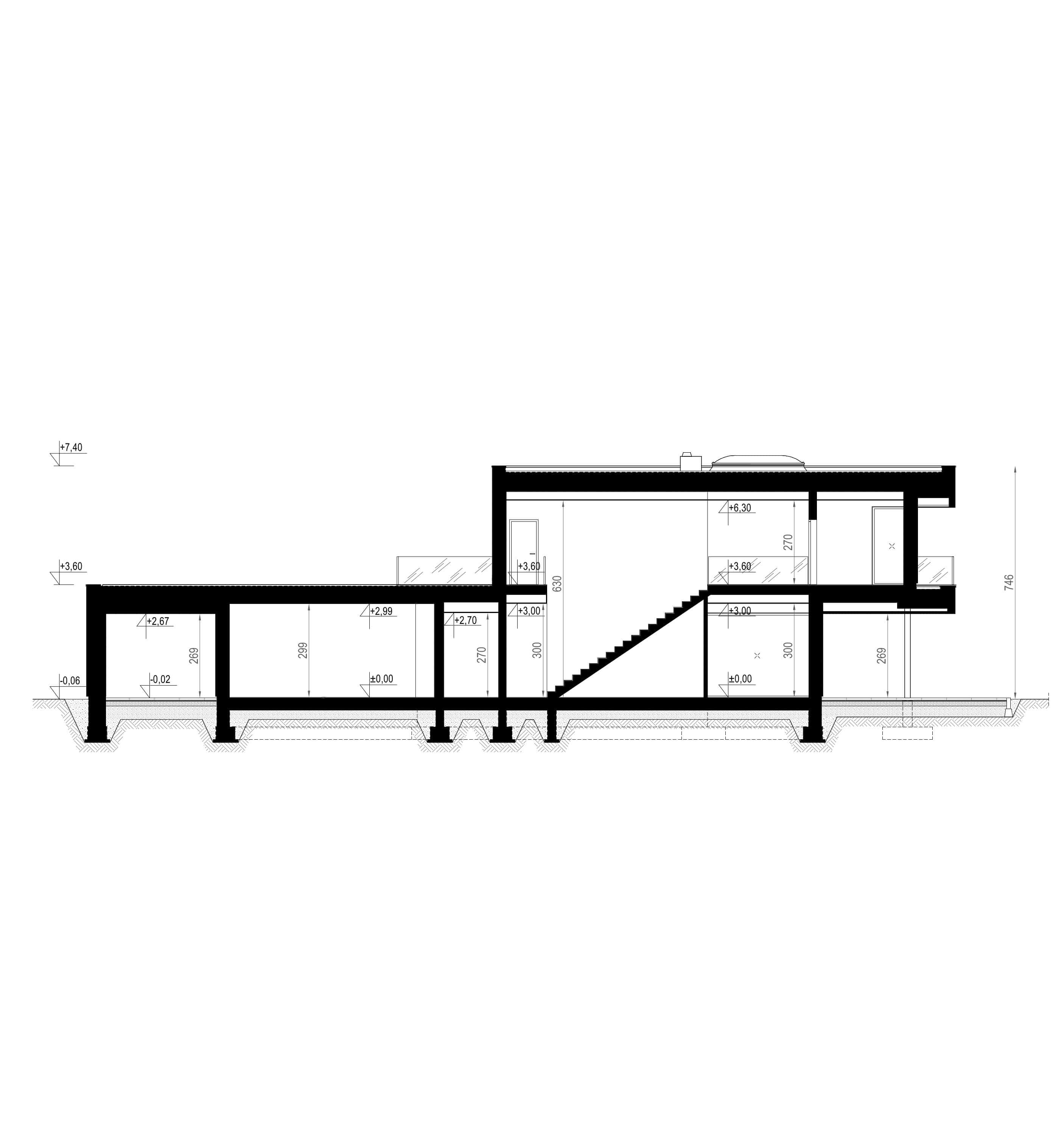 - wszystkie niezbędne przekroje przez całość oraz charakterystyczne fragmenty budynku,