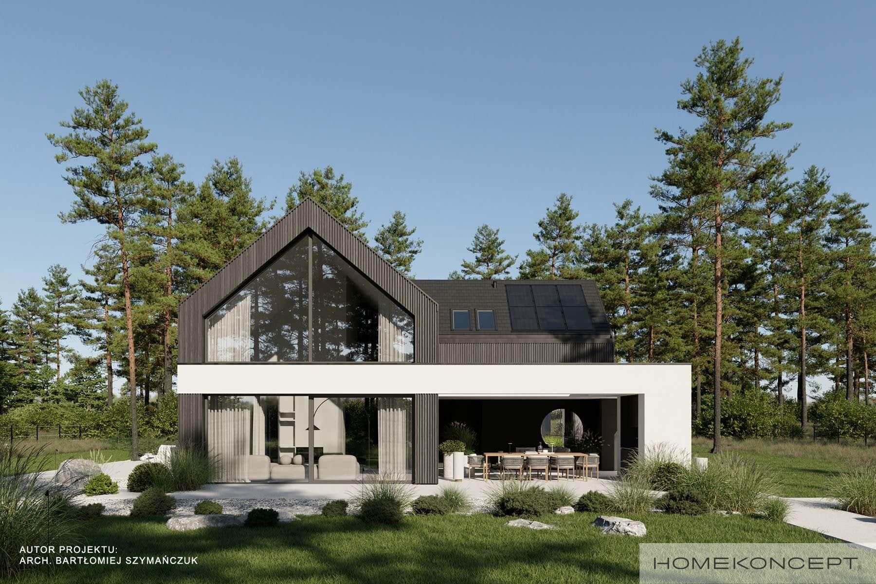 Elewacja: tynk silikonowy połączony z deską elewacyjną lamelową