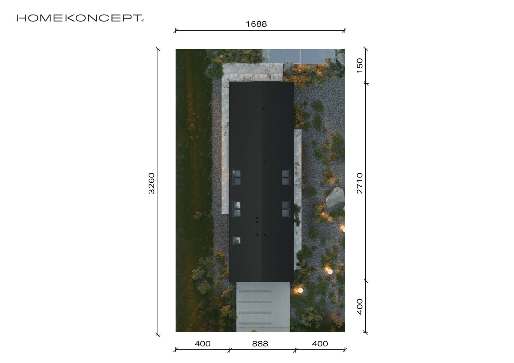 - Minimalne wymiary działki32.6 x 16.88m