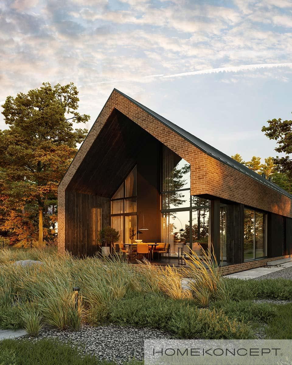 Elewacja: tynk silikonowy połączony z deską elewacyjną i płytką klinkierową