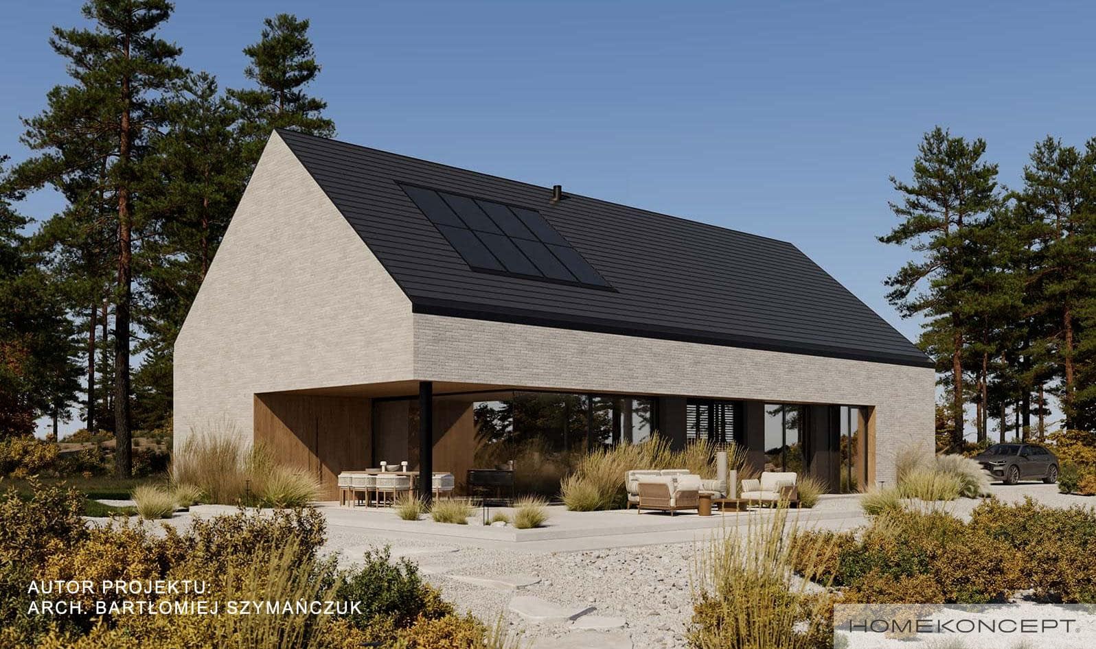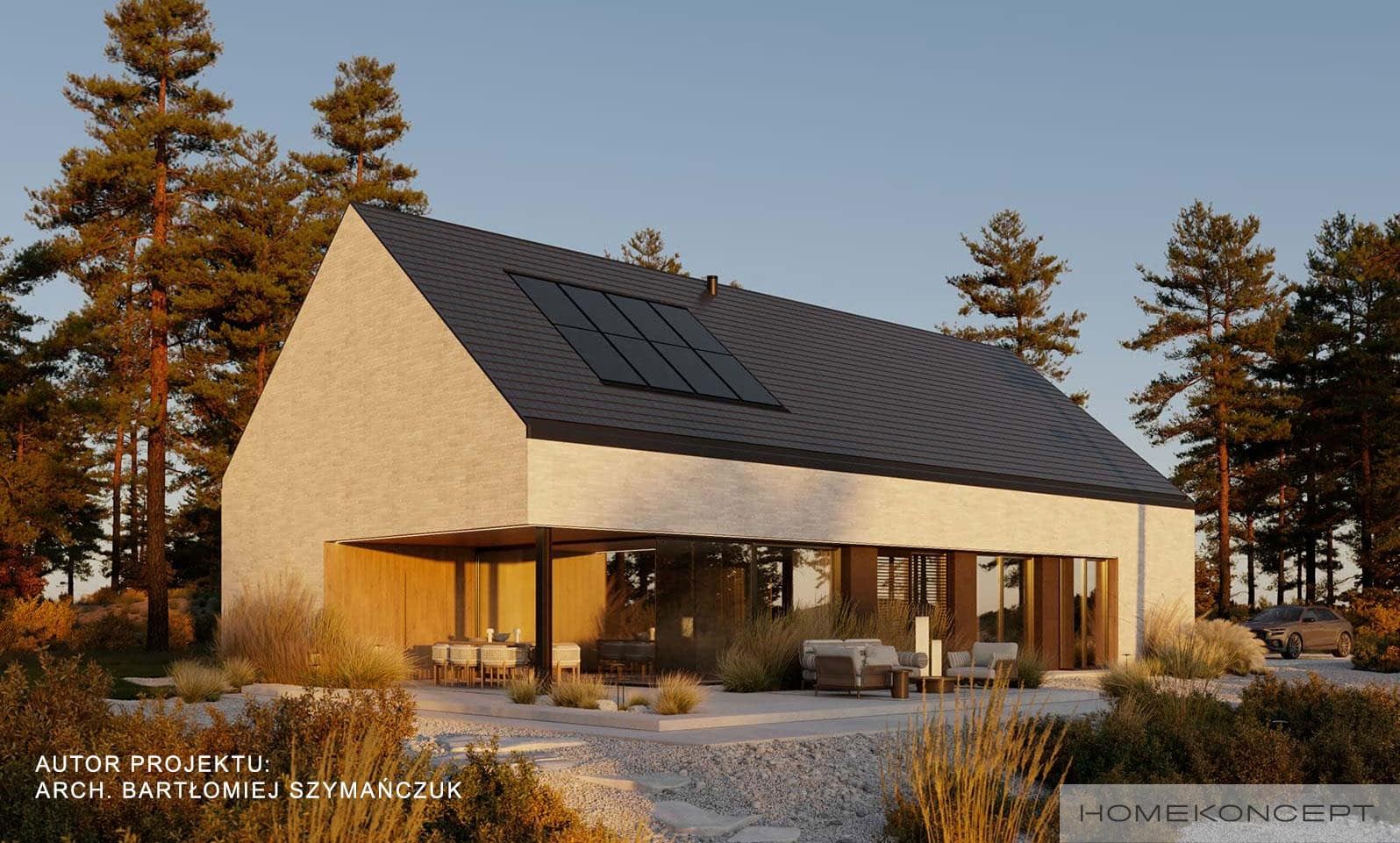 Dach: dwuspadowy kryty dachówką ceramiczną lub cementową swissporTON wraz z systemem fotowoltaicznym SunLACE