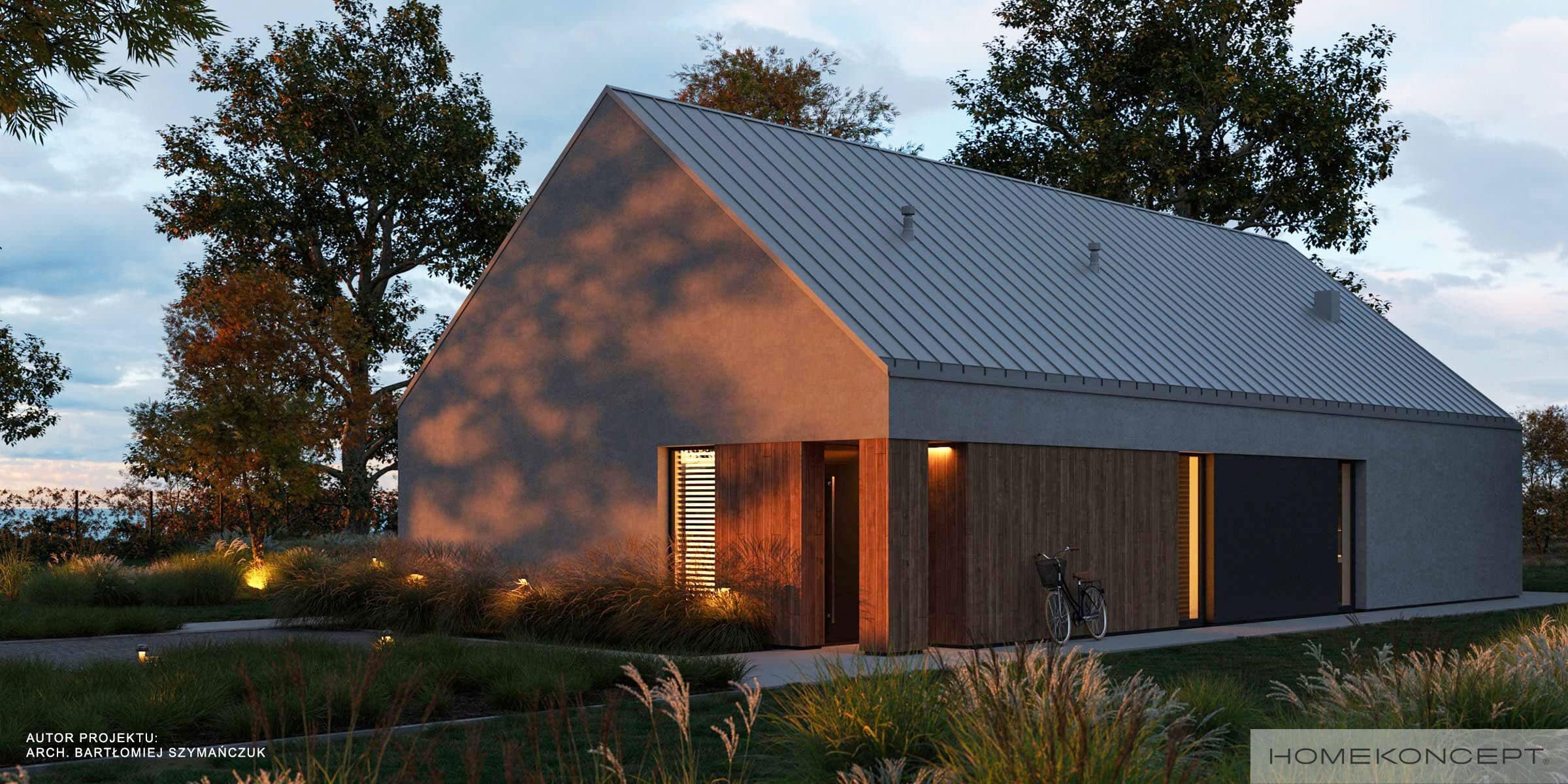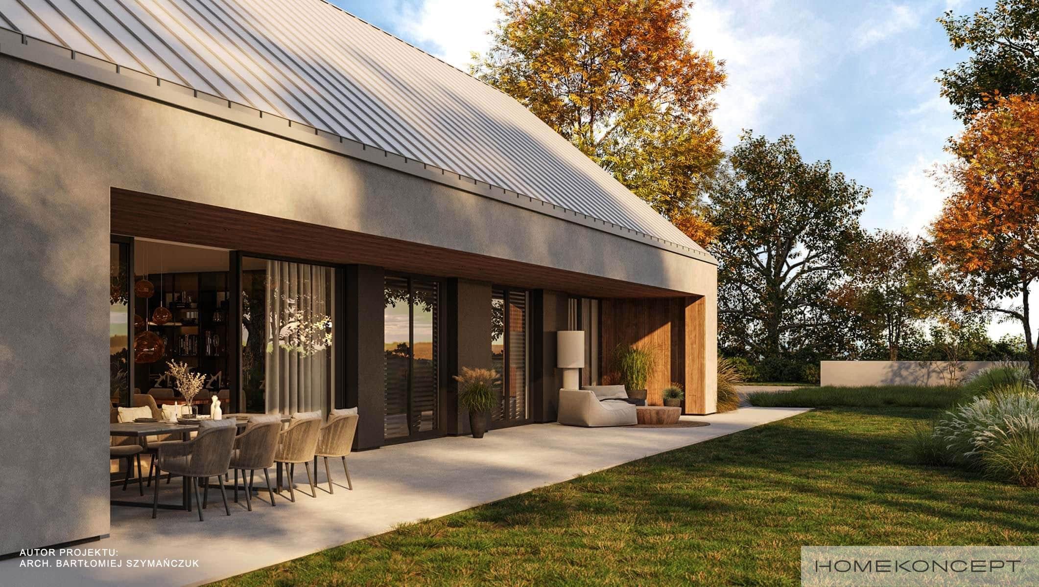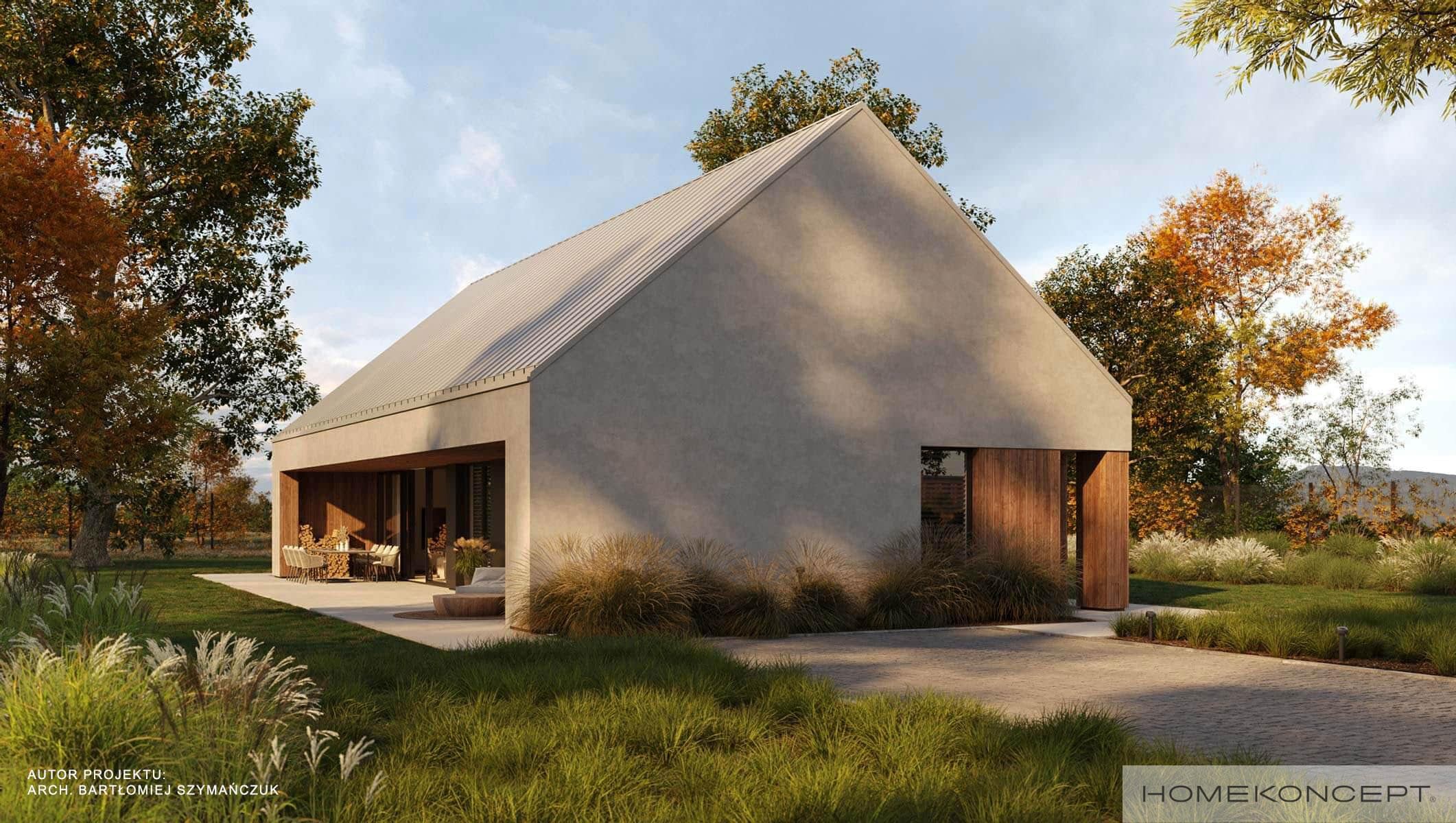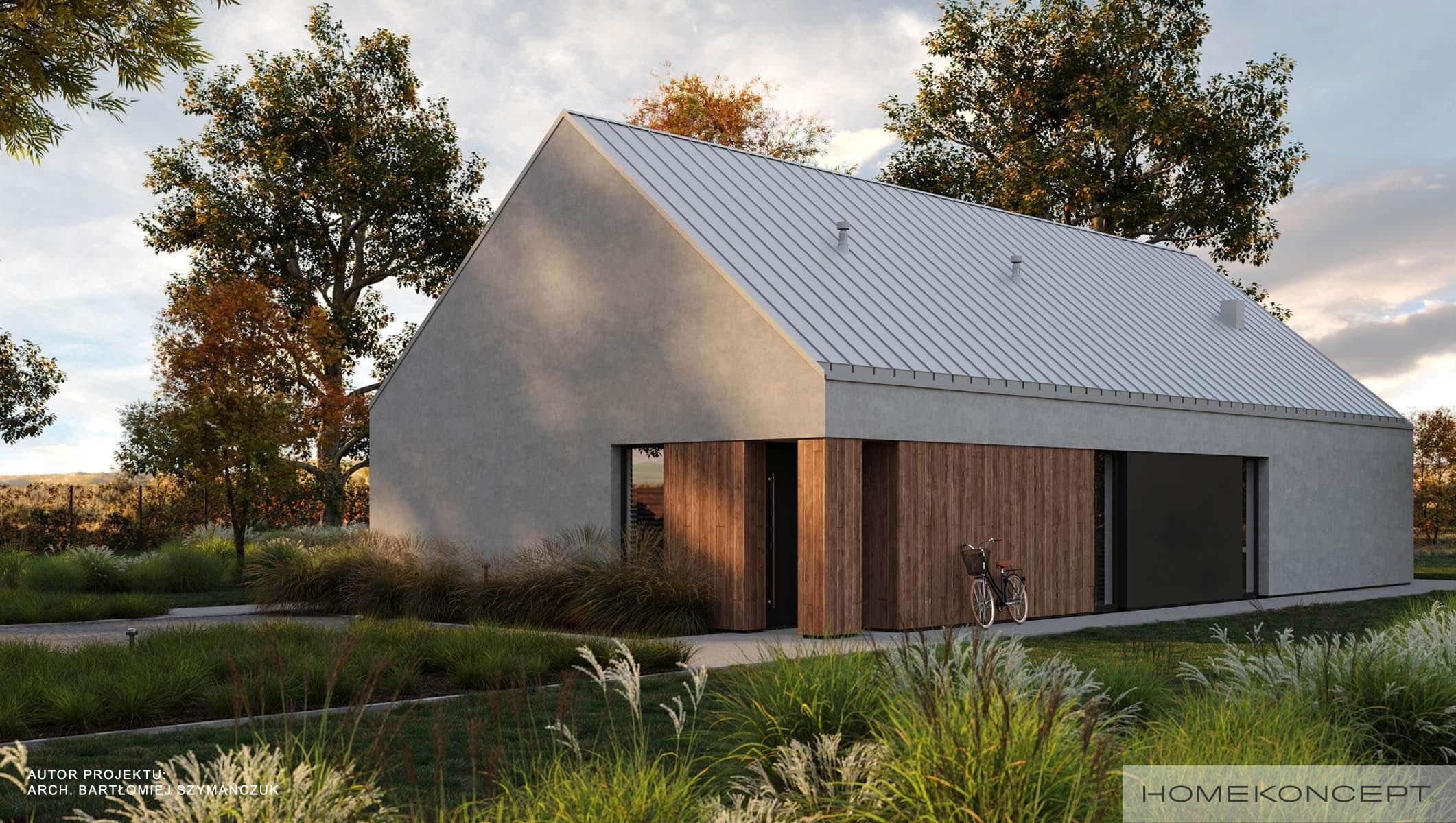 Elewacja: tynk silikonowy połączony z deską elewacyjną