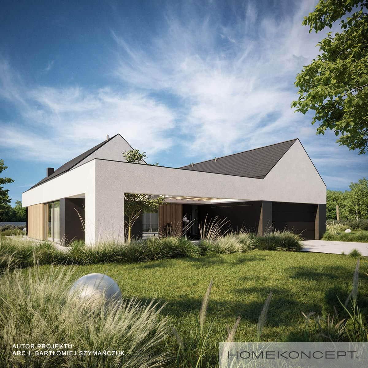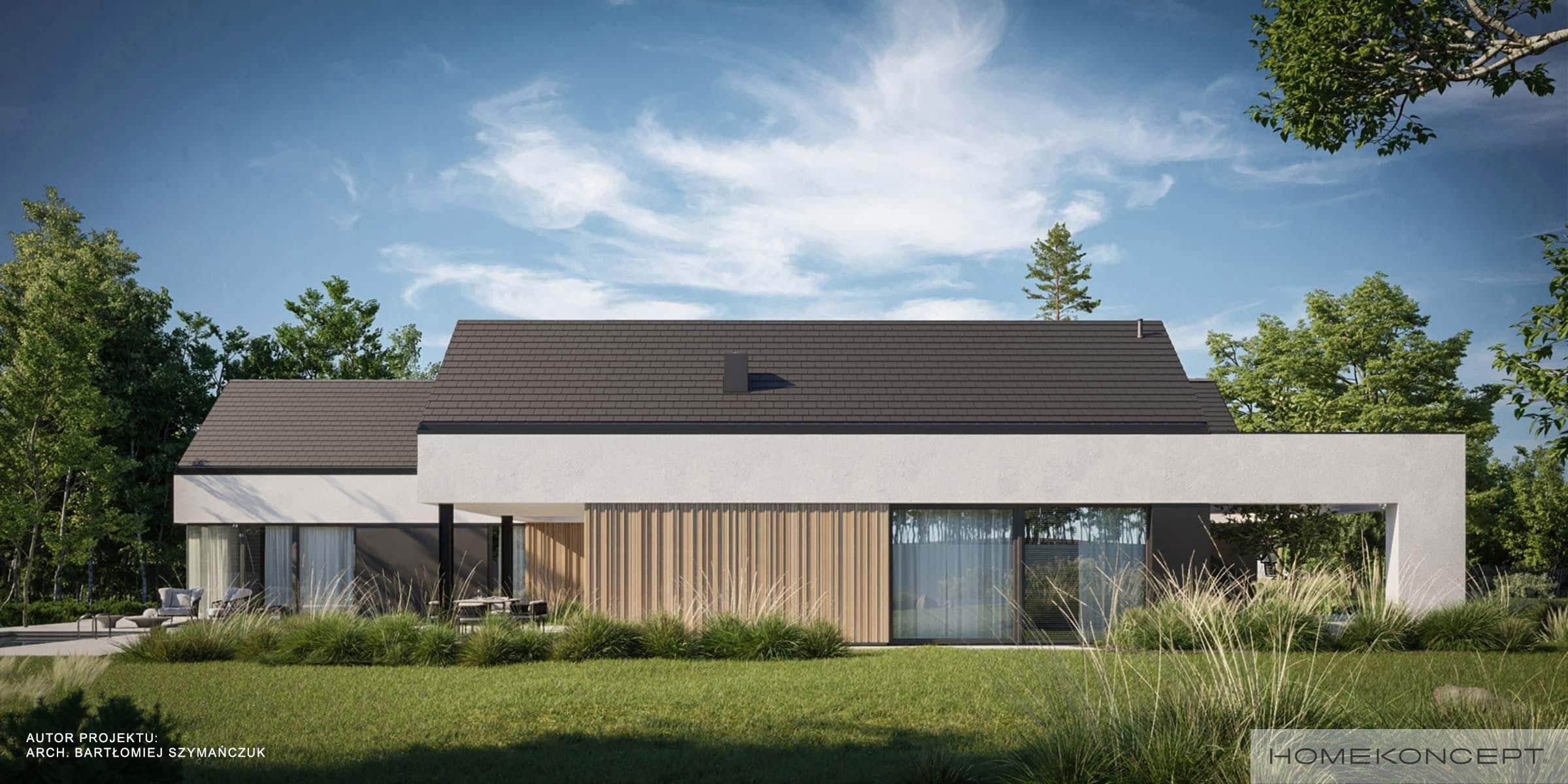 Elewacja: tynk silikonowy połączony z deską elewacyjną