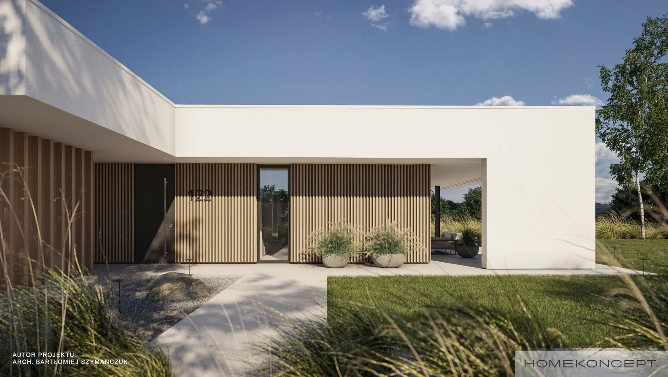 Elewacja: tynk silikonowy połączony z panelami lamelowymi