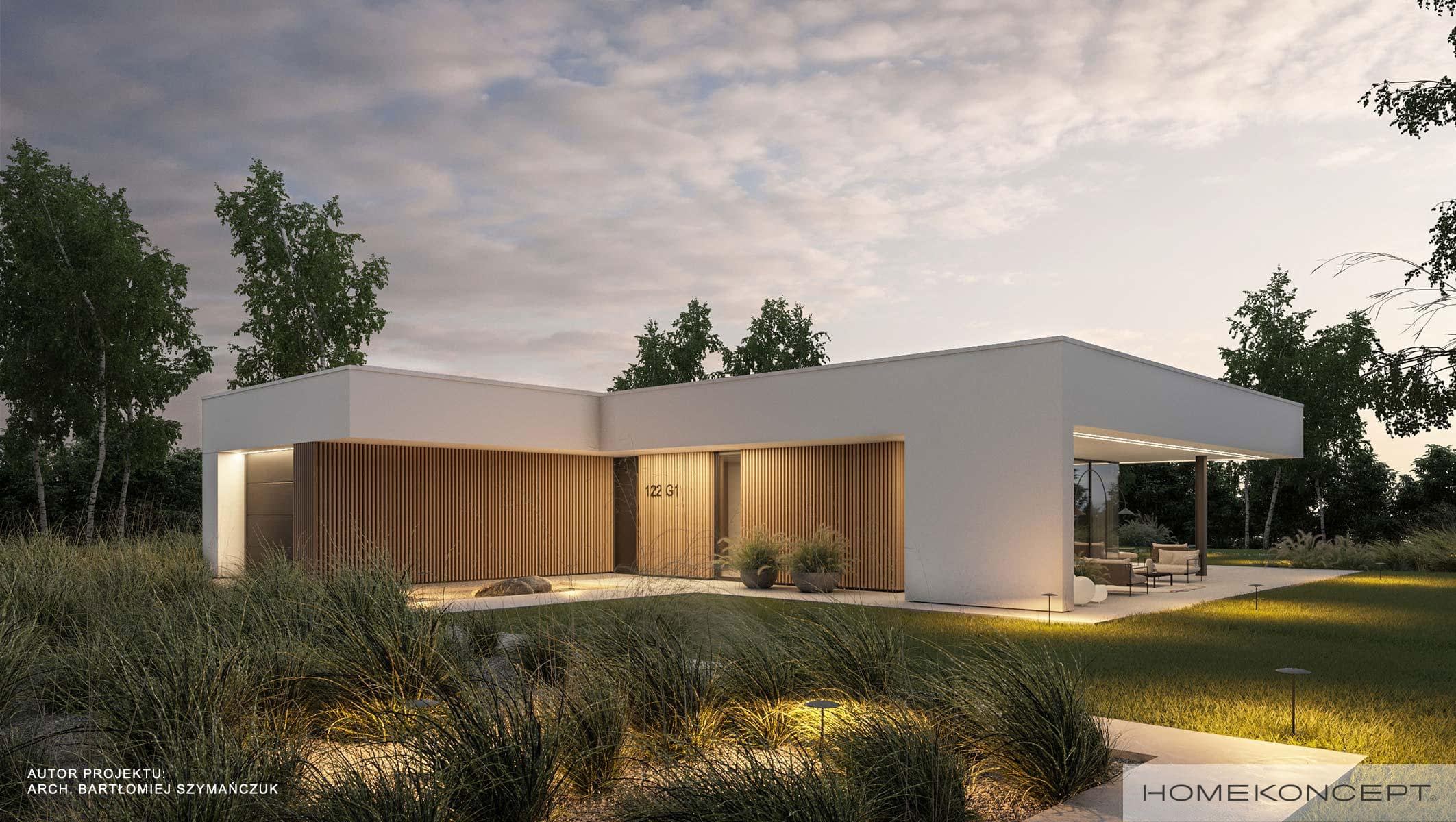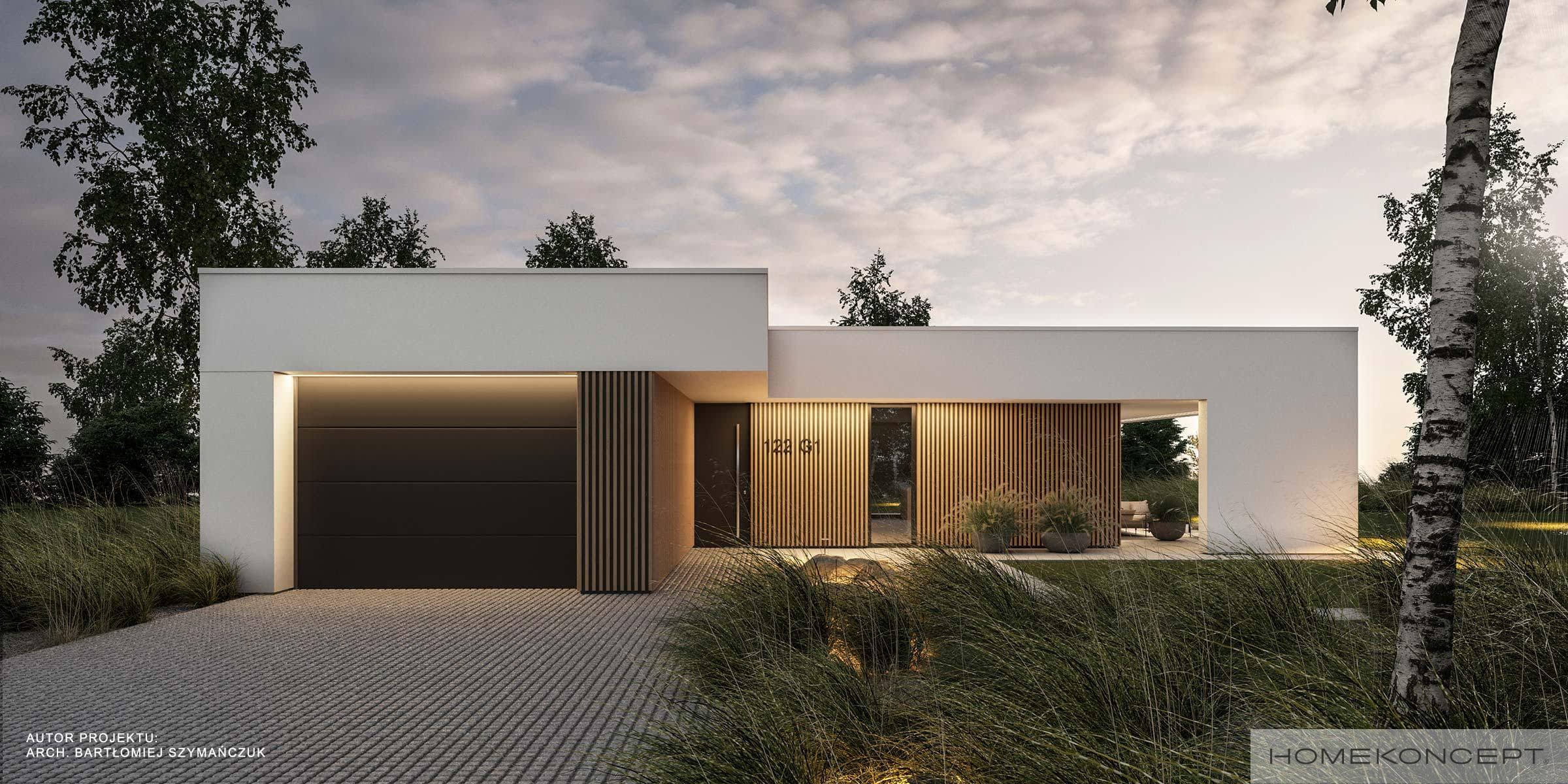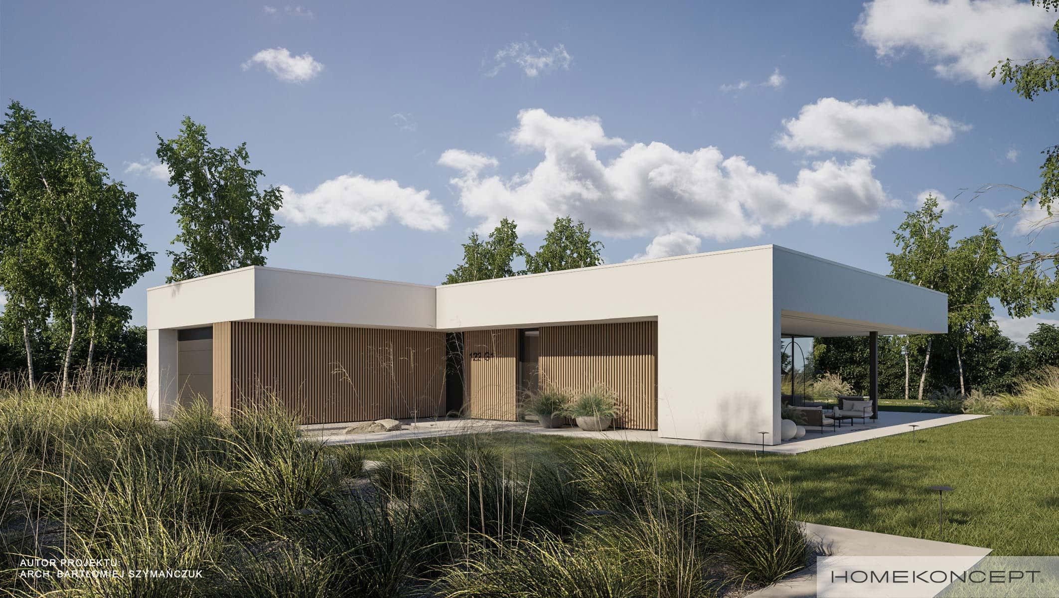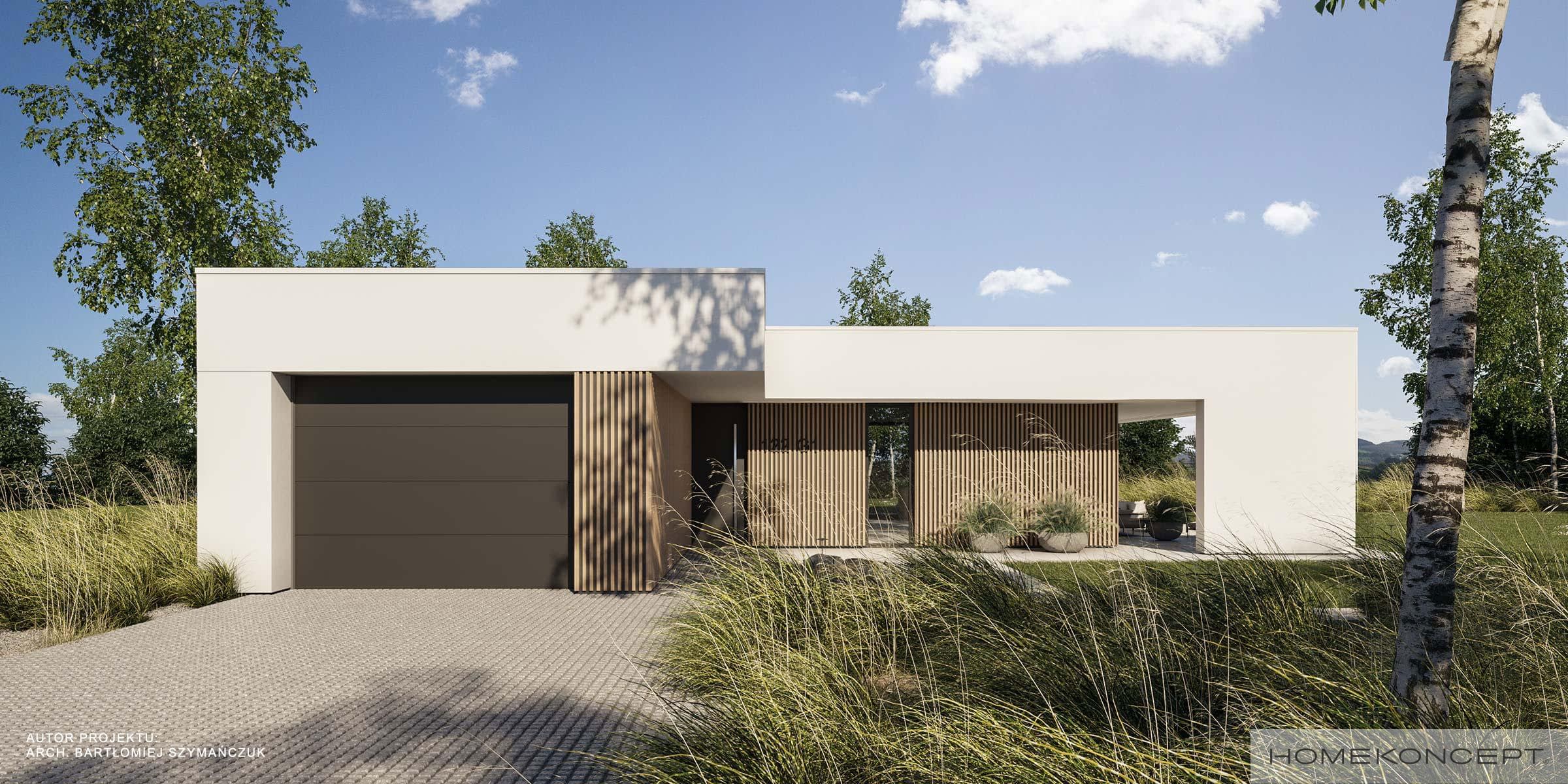 Elewacja: tynk silikonowy połączony z deską elewacyjną lamelową