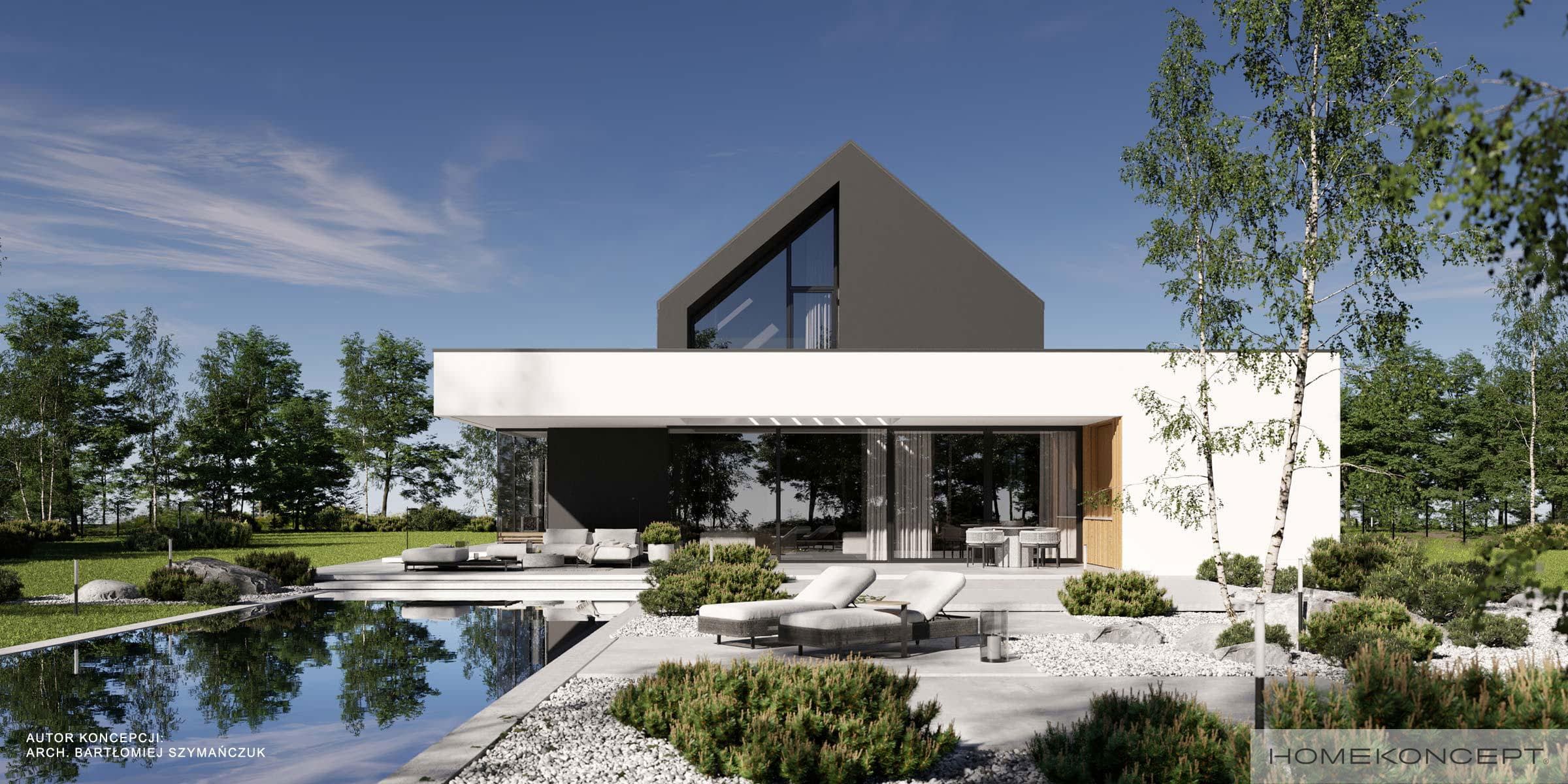 Dach: dwuspadowy kryty dachówką ceramiczną lub cementową swissporTON wraz z systemem fotowoltaicznym SunLACE, stropodach pełny kryty membraną EPDM, okna dachowe FAKRO