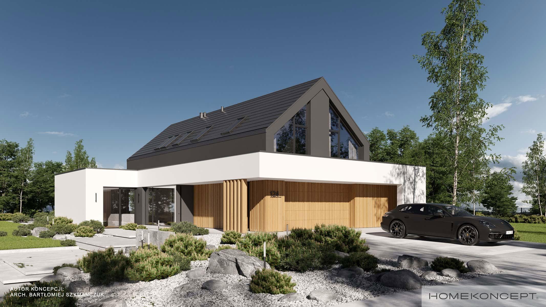 Elewacja: tynk silikonowy połączony z deską elewacyjną