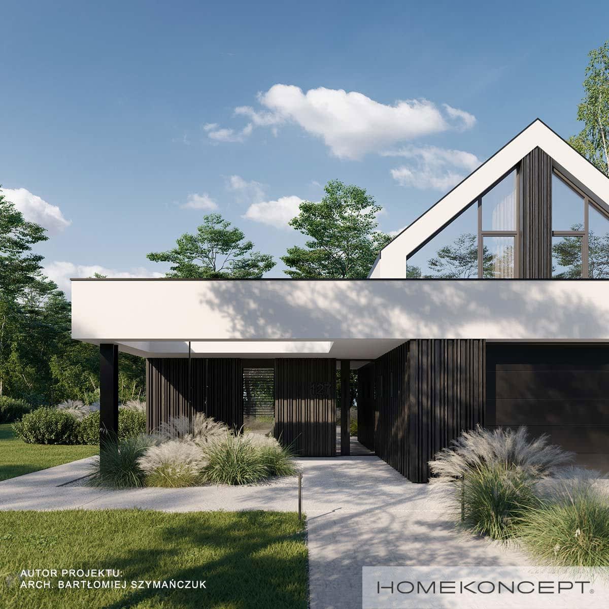 Elewacja: tynk silikonowy połączony z deską elewacyjną