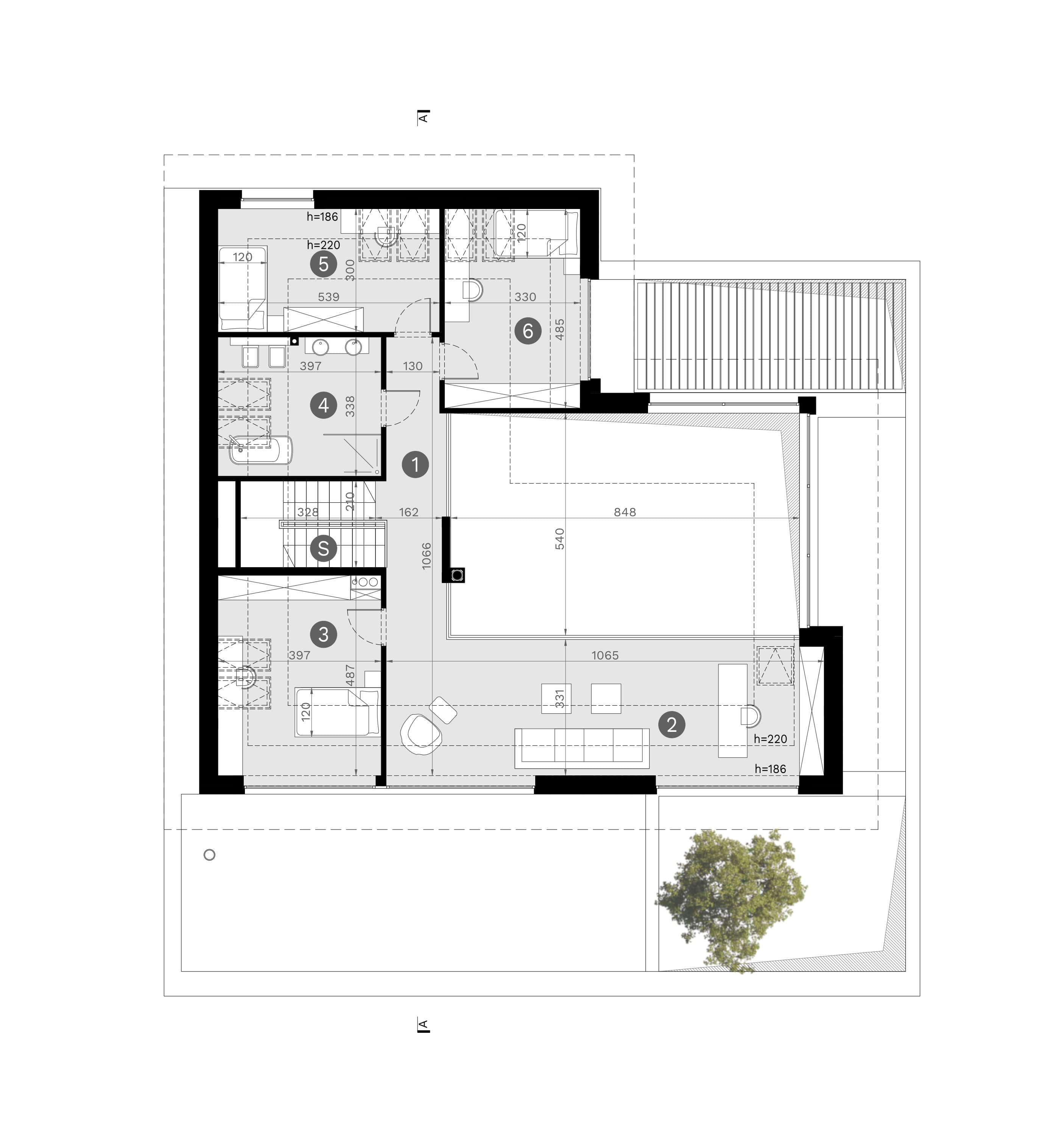 - rzuty poziome poszczególnych kondygnacji (parter, poddasze lub piętro),