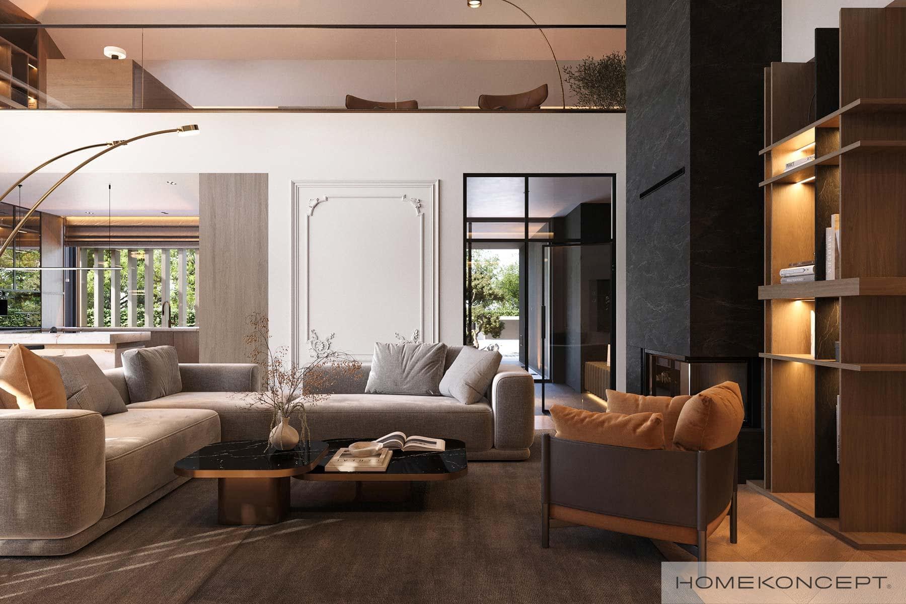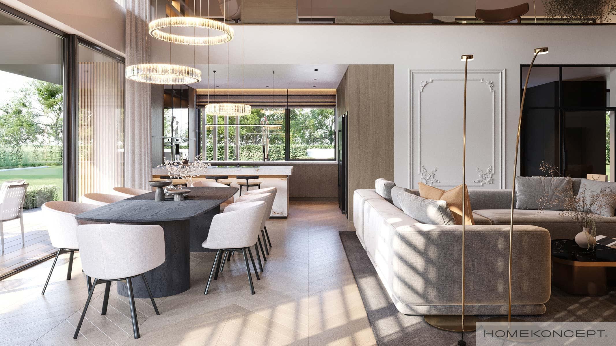 Elewacja: tynk silikonowy połączony z deskami elewacyjnymi lamelowymi oraz spiekiem kwarcowym