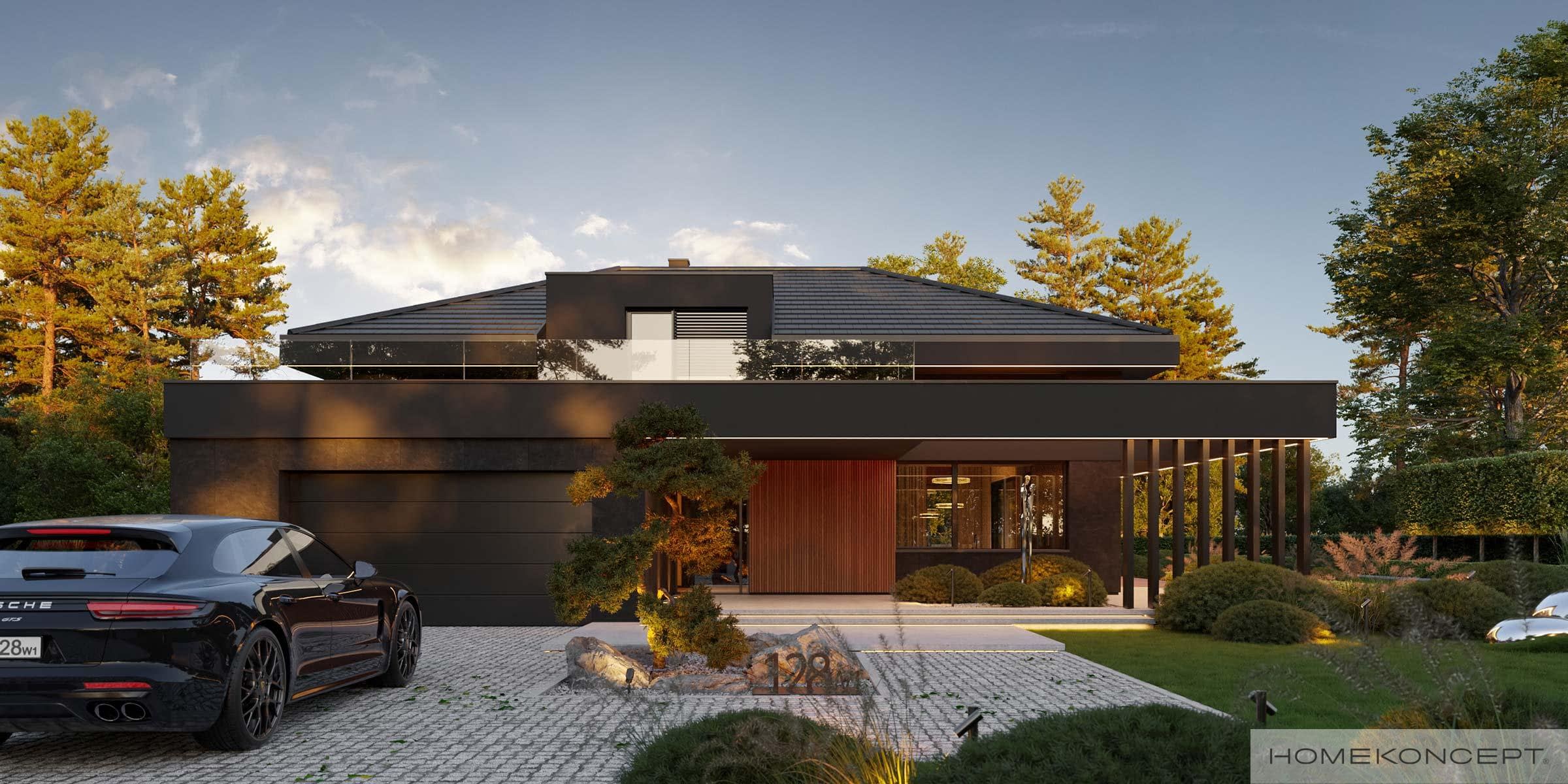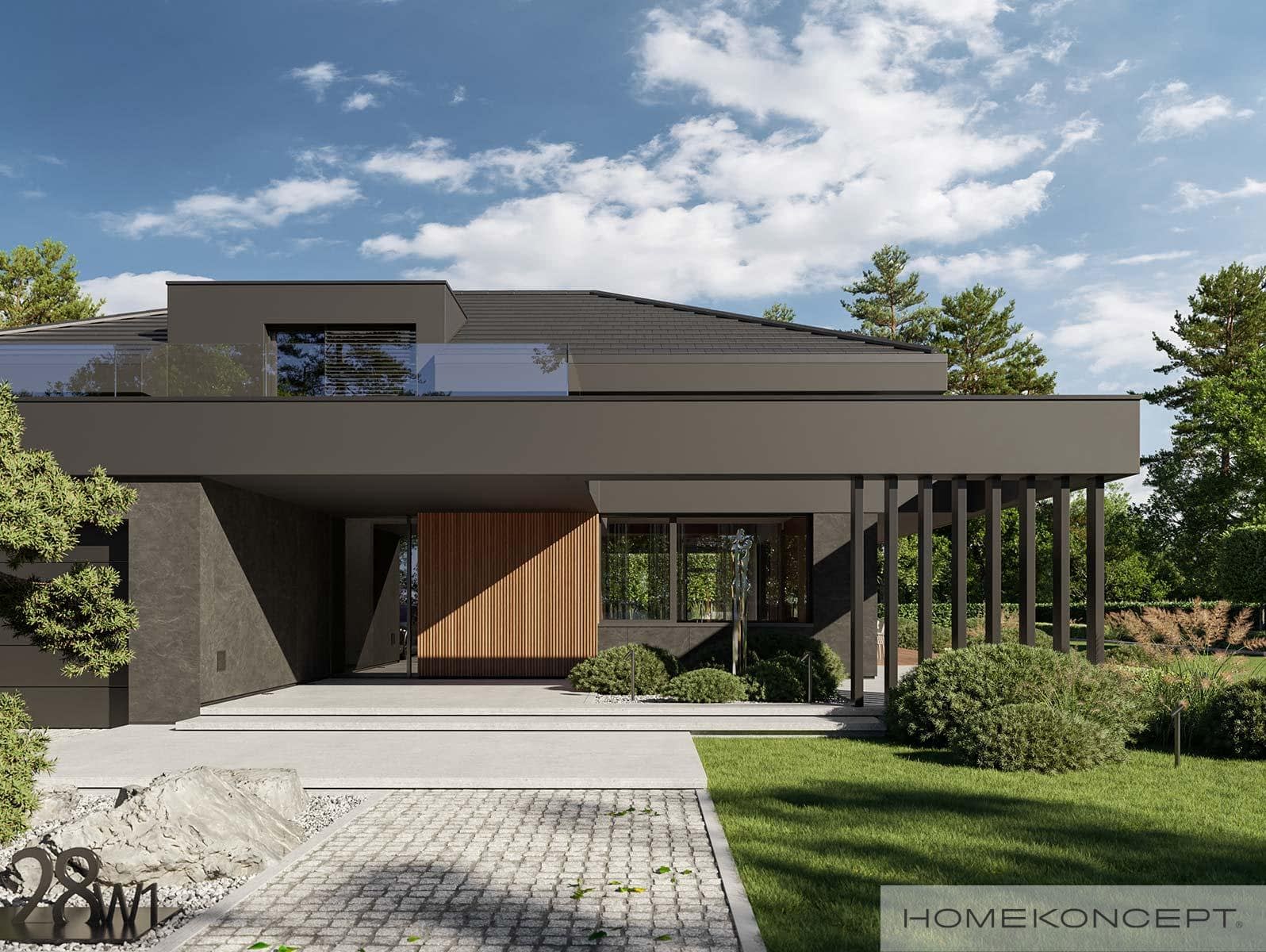 Dach: czterospadowy kryty dachówką ceramiczną lub cementową swissporTON, stropodach pełny kryty membraną EPDM, okna dachowe FAKRO