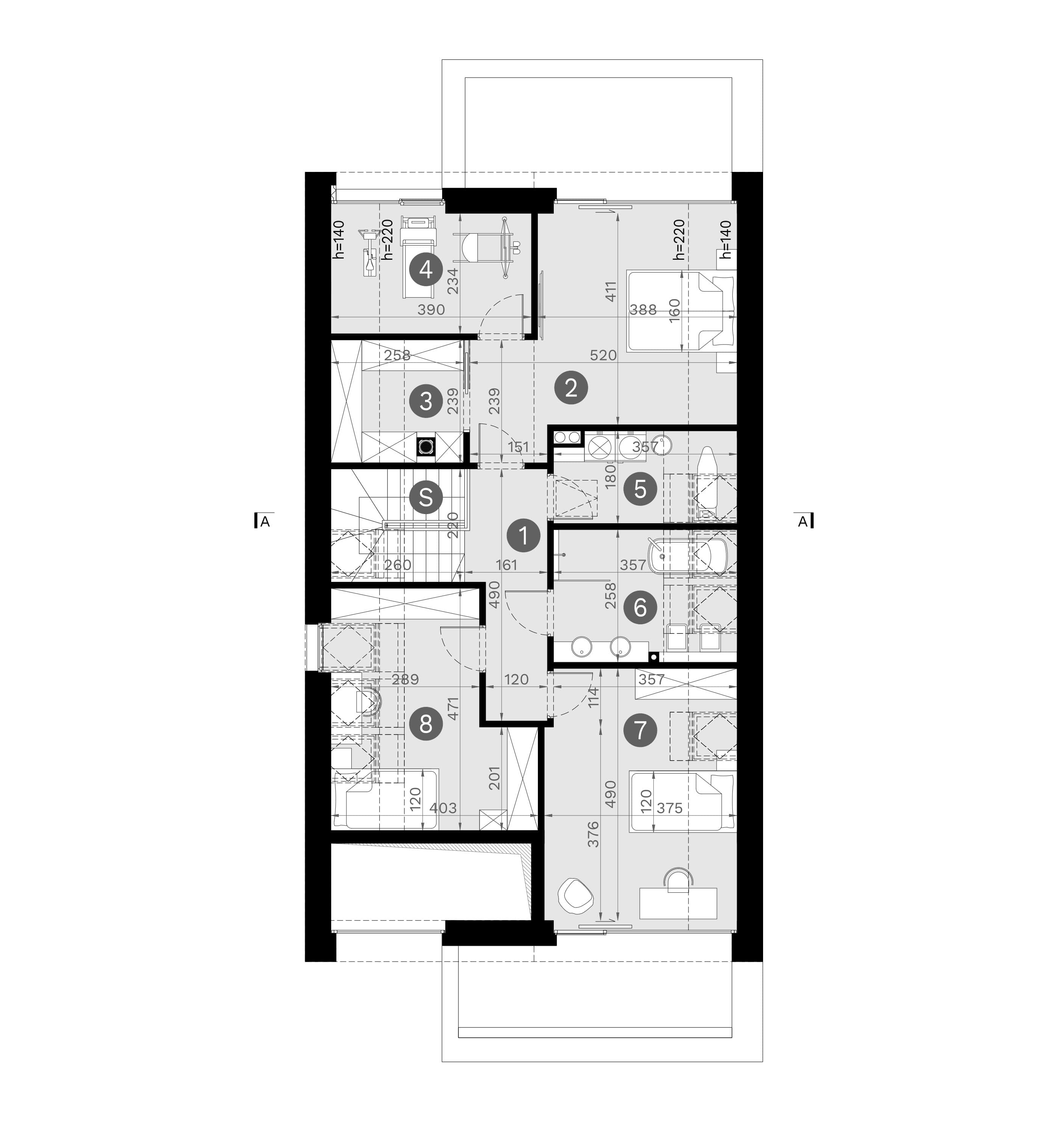 - rzut dachu i więźby dachowej,