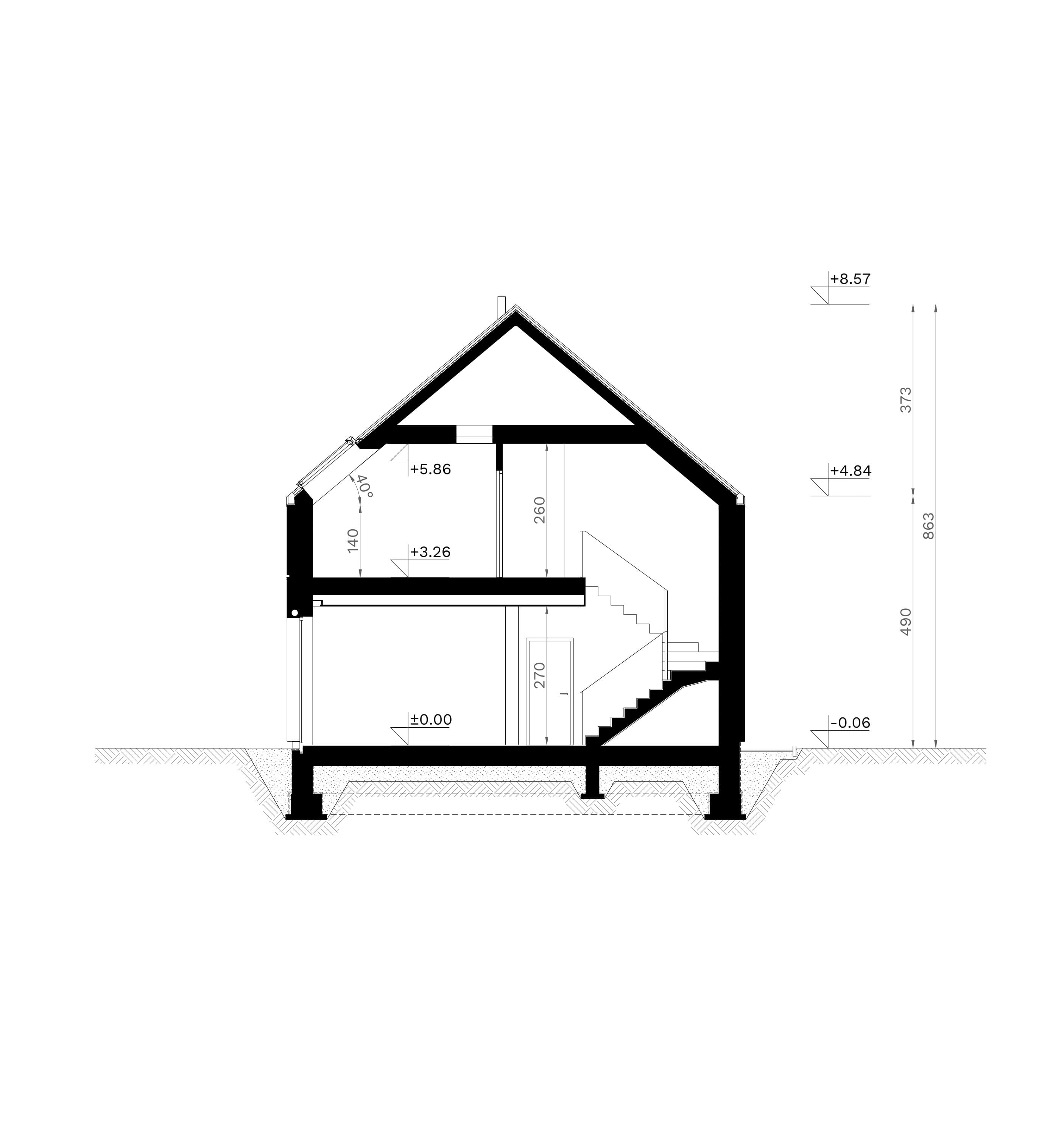Dach: dwuspadowy kryty dachówką ceramiczną lub cementową swissporTON wraz z systemem fotowoltaicznym SunLACE, stropodach pełny kryty membraną EPDM, okna dachowe FAKRO