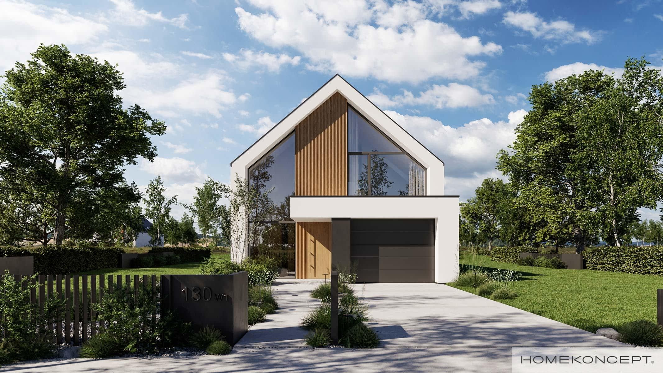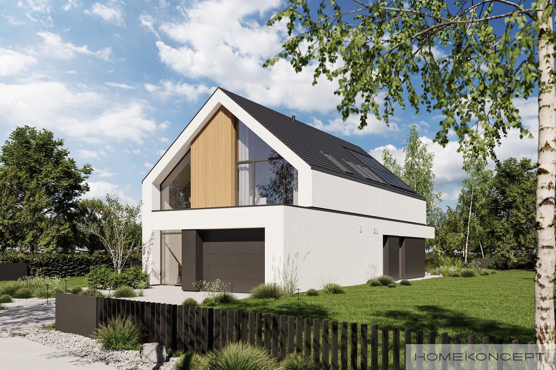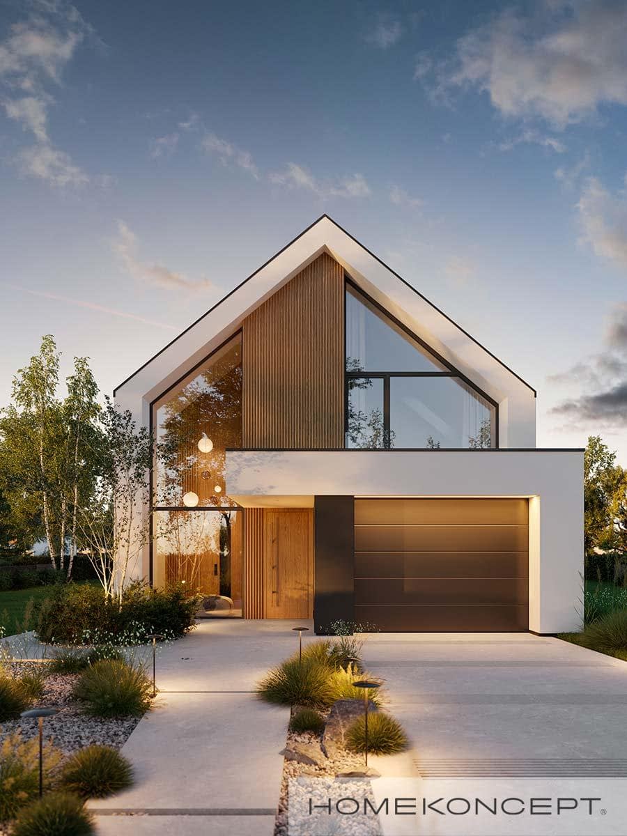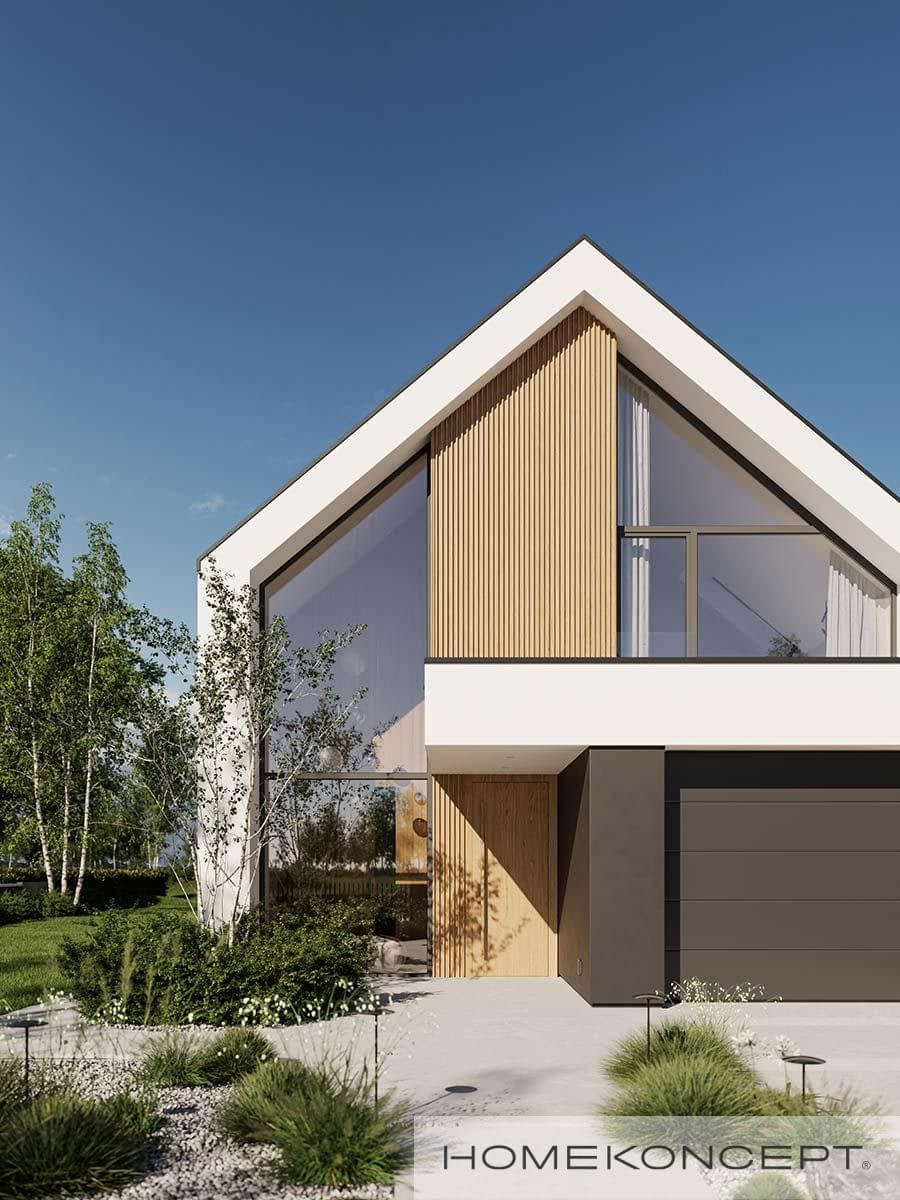 Elewacja: tynk silikonowy połączony z deską elewacyjną lamelową