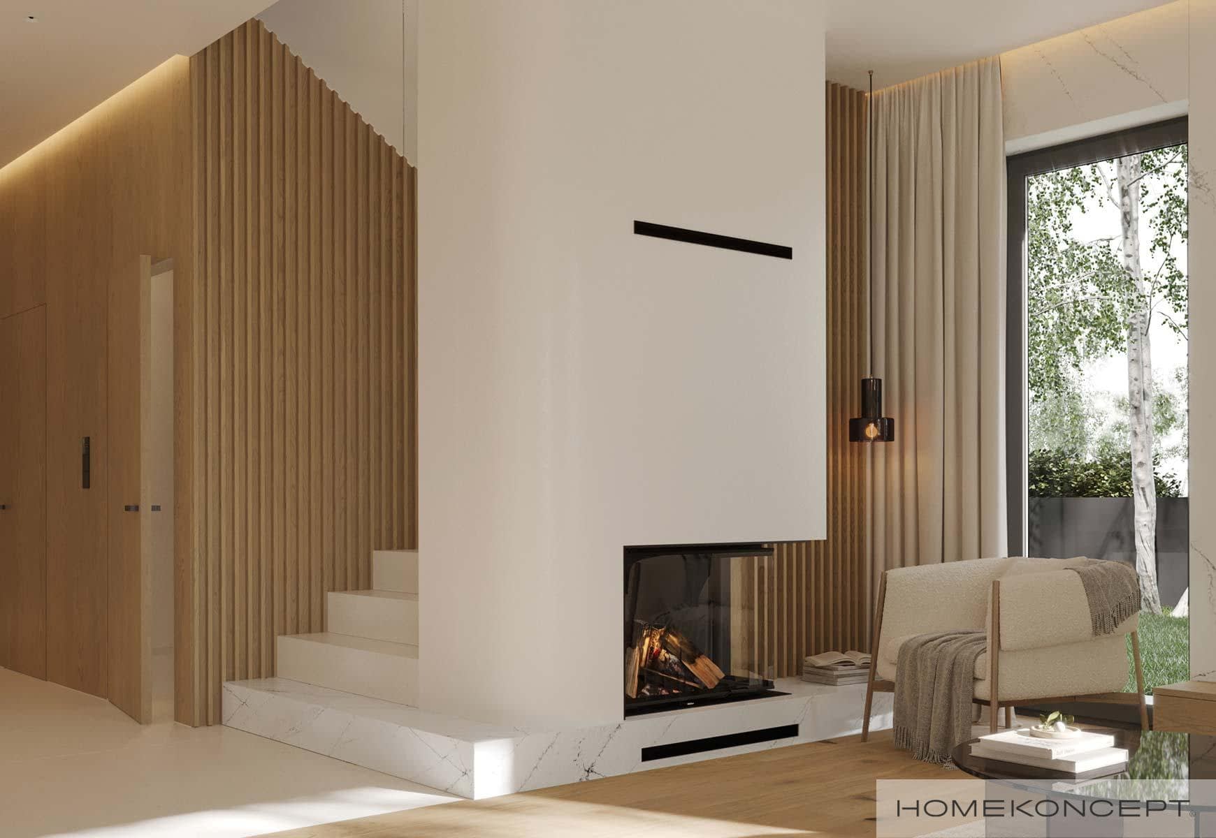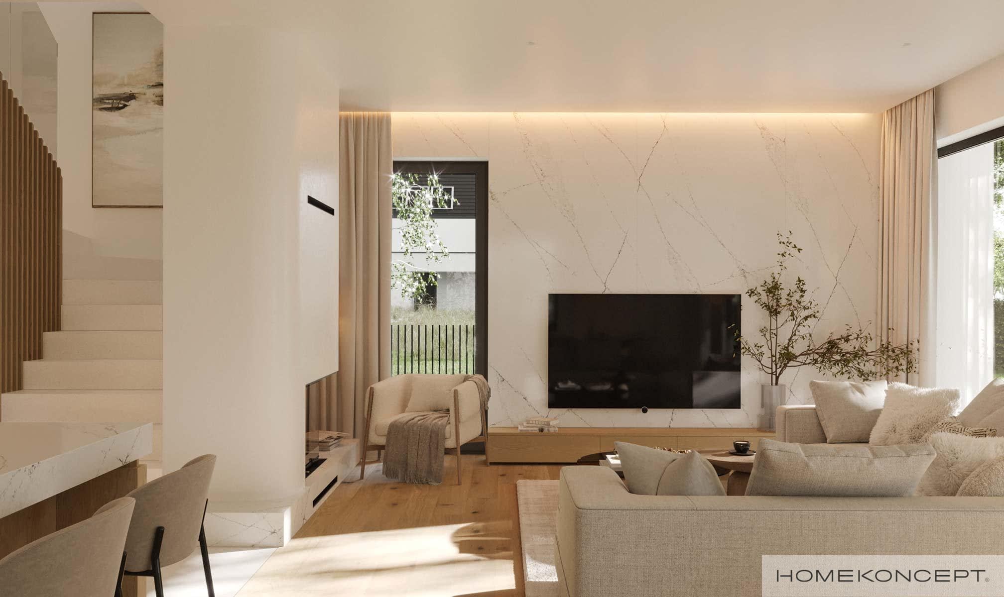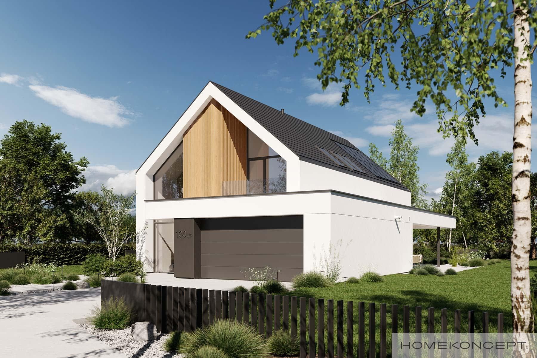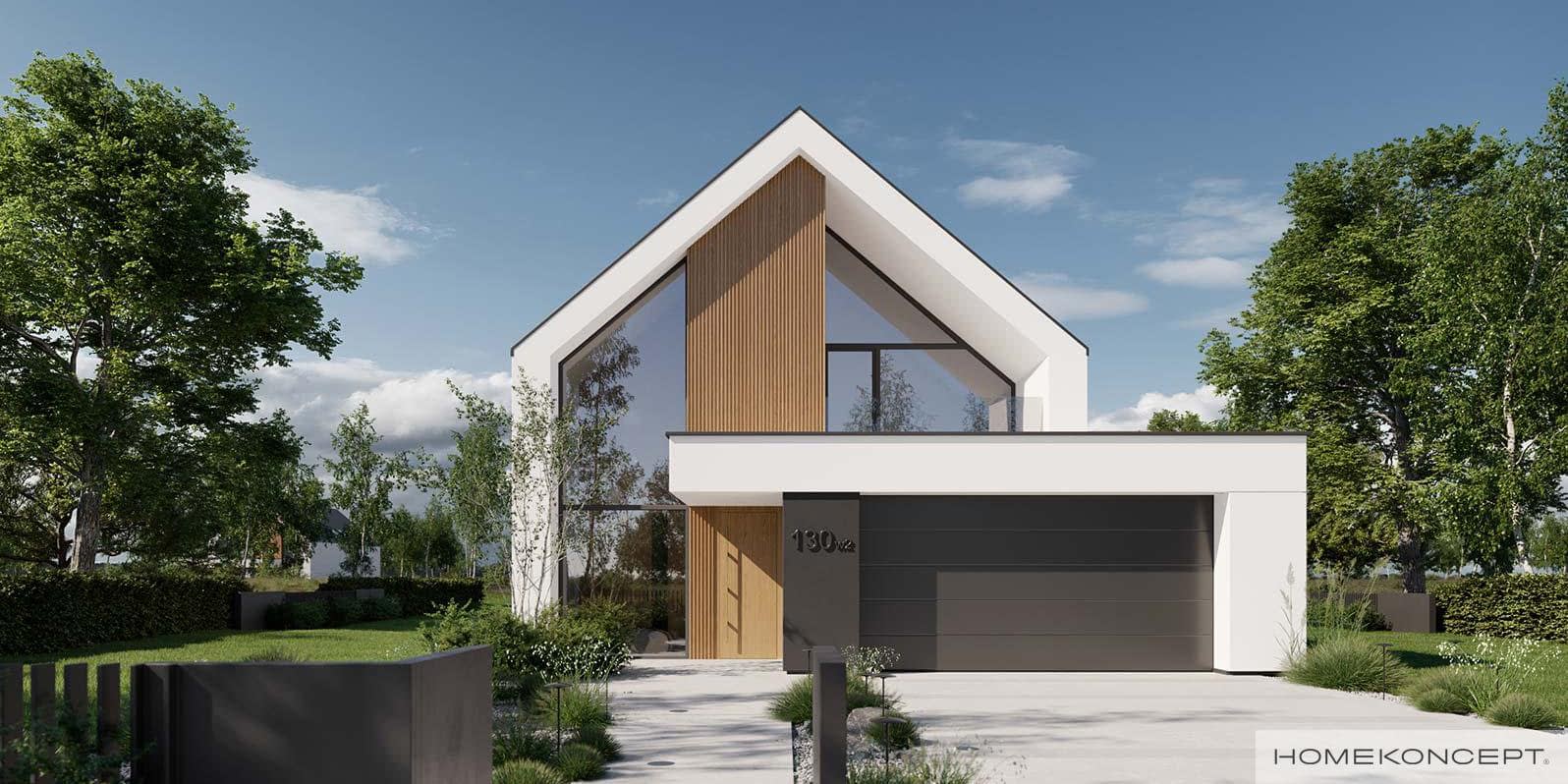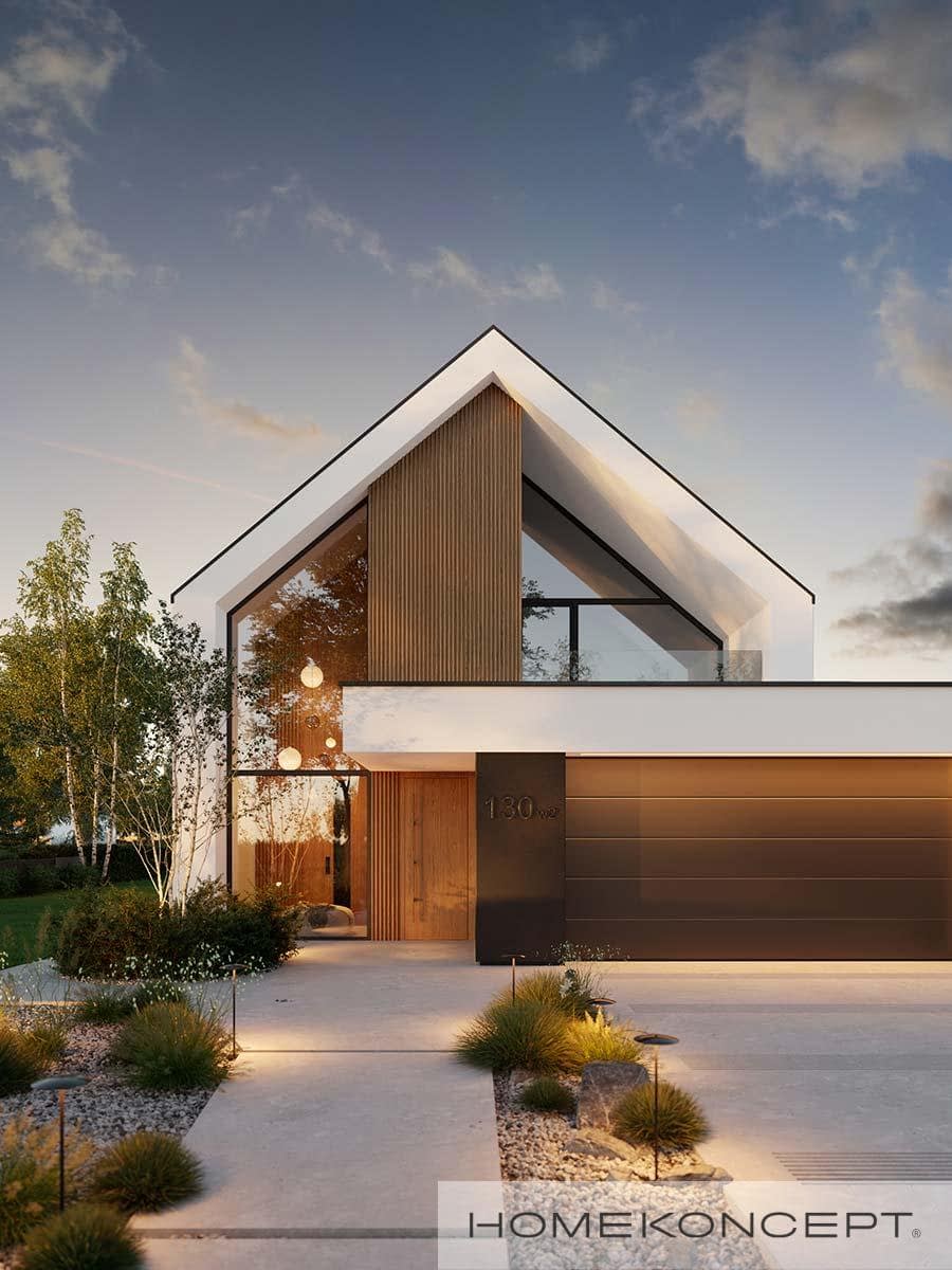 Elewacja: tynk silikonowy połączony z deską elewacyjną lamelową