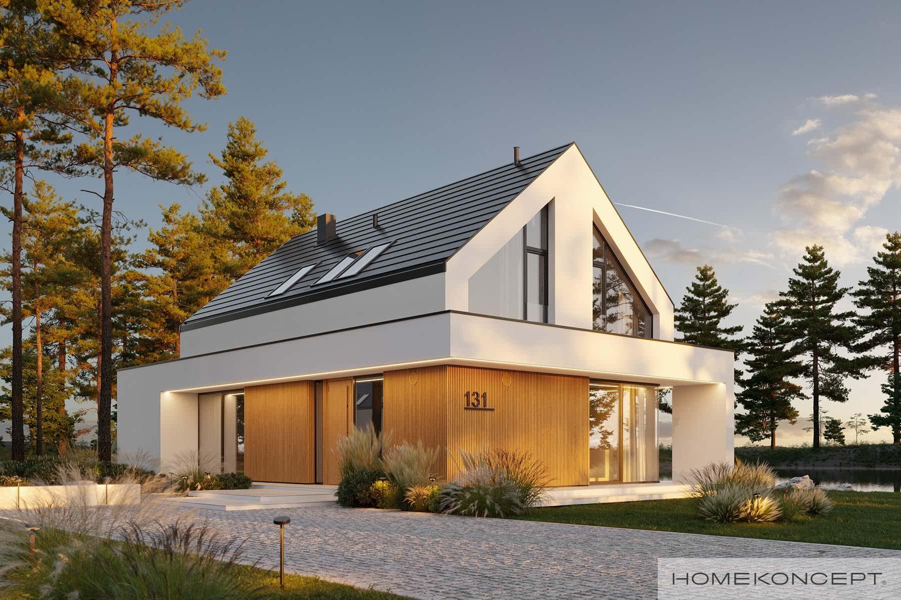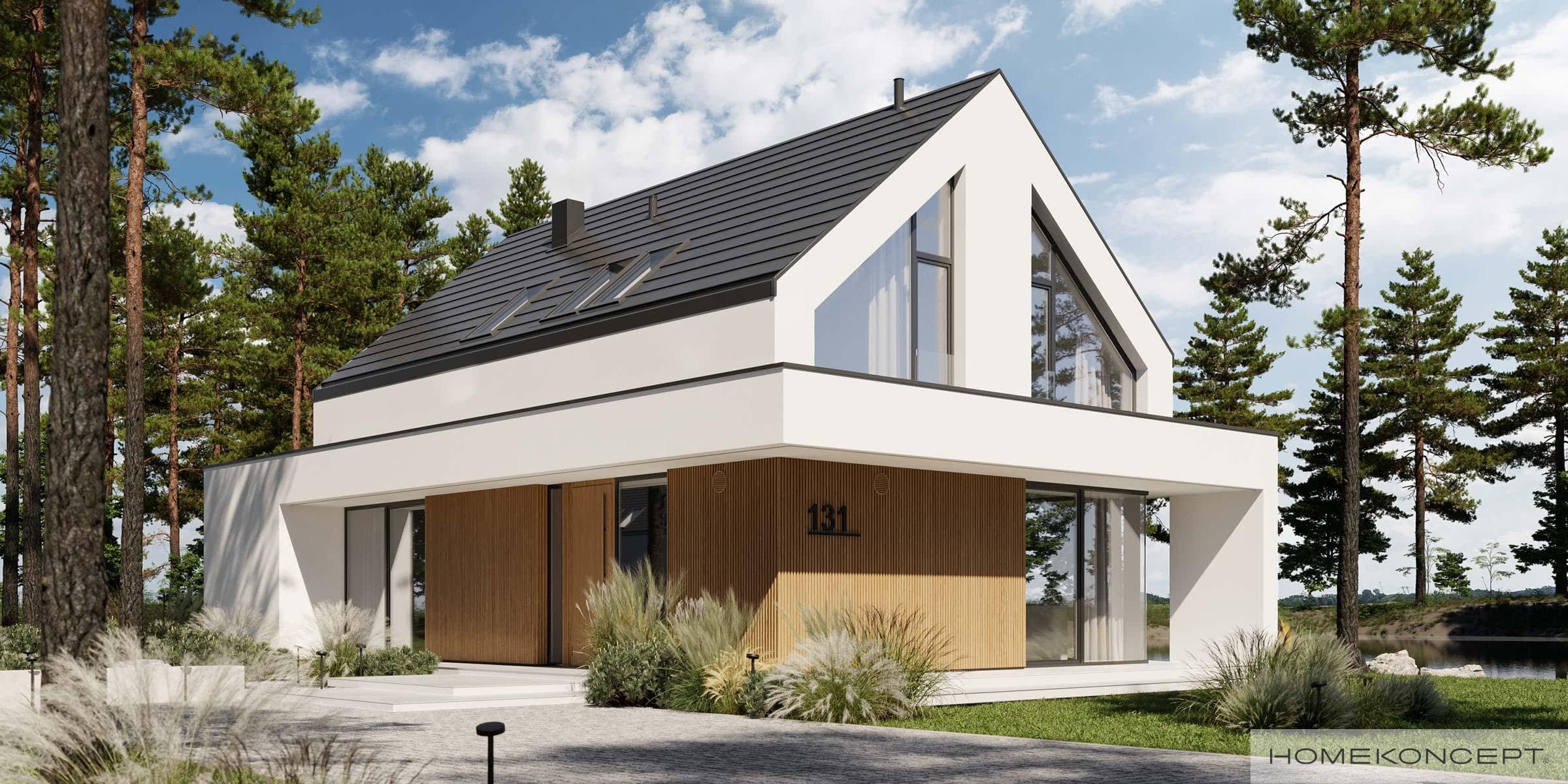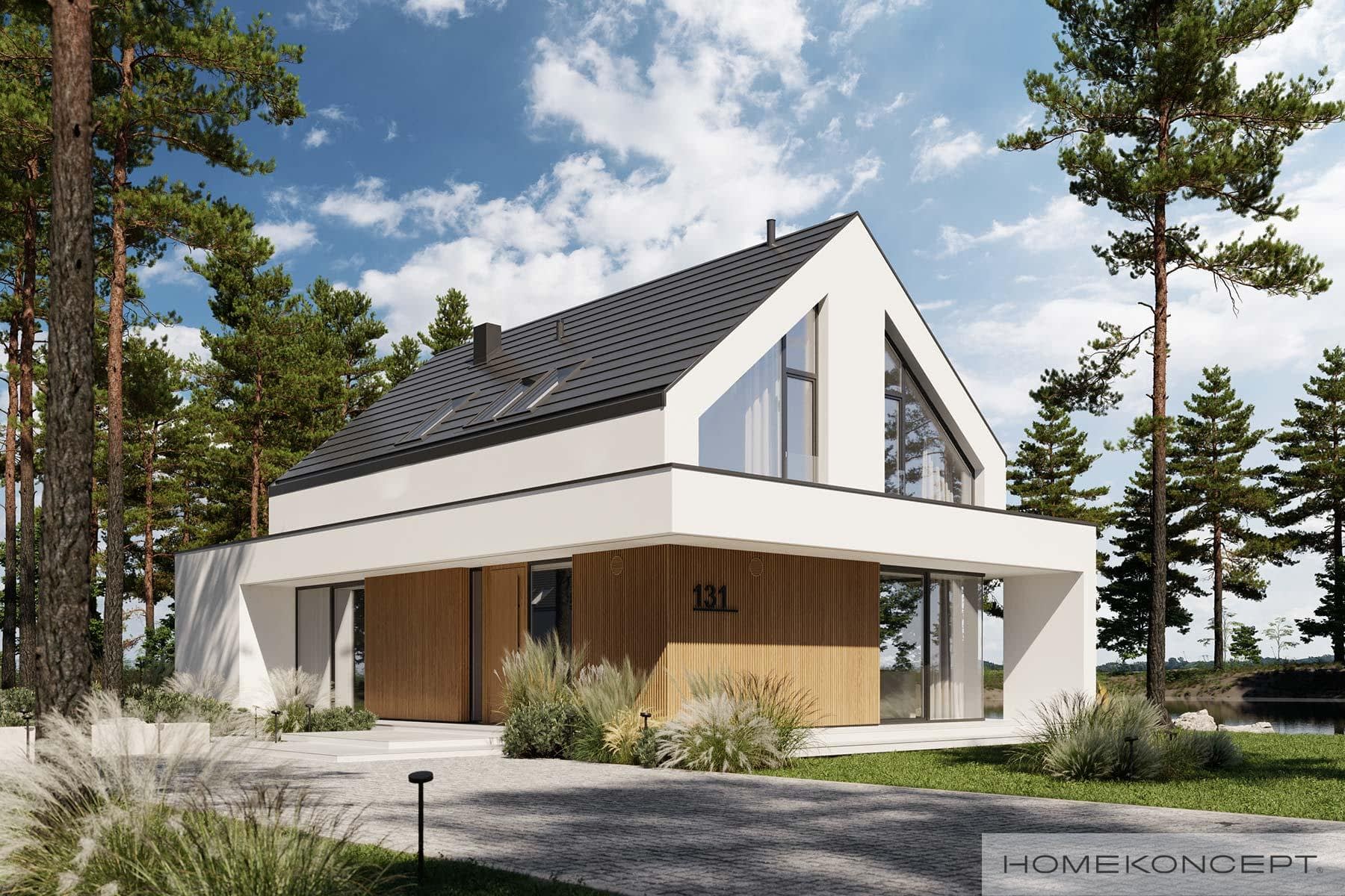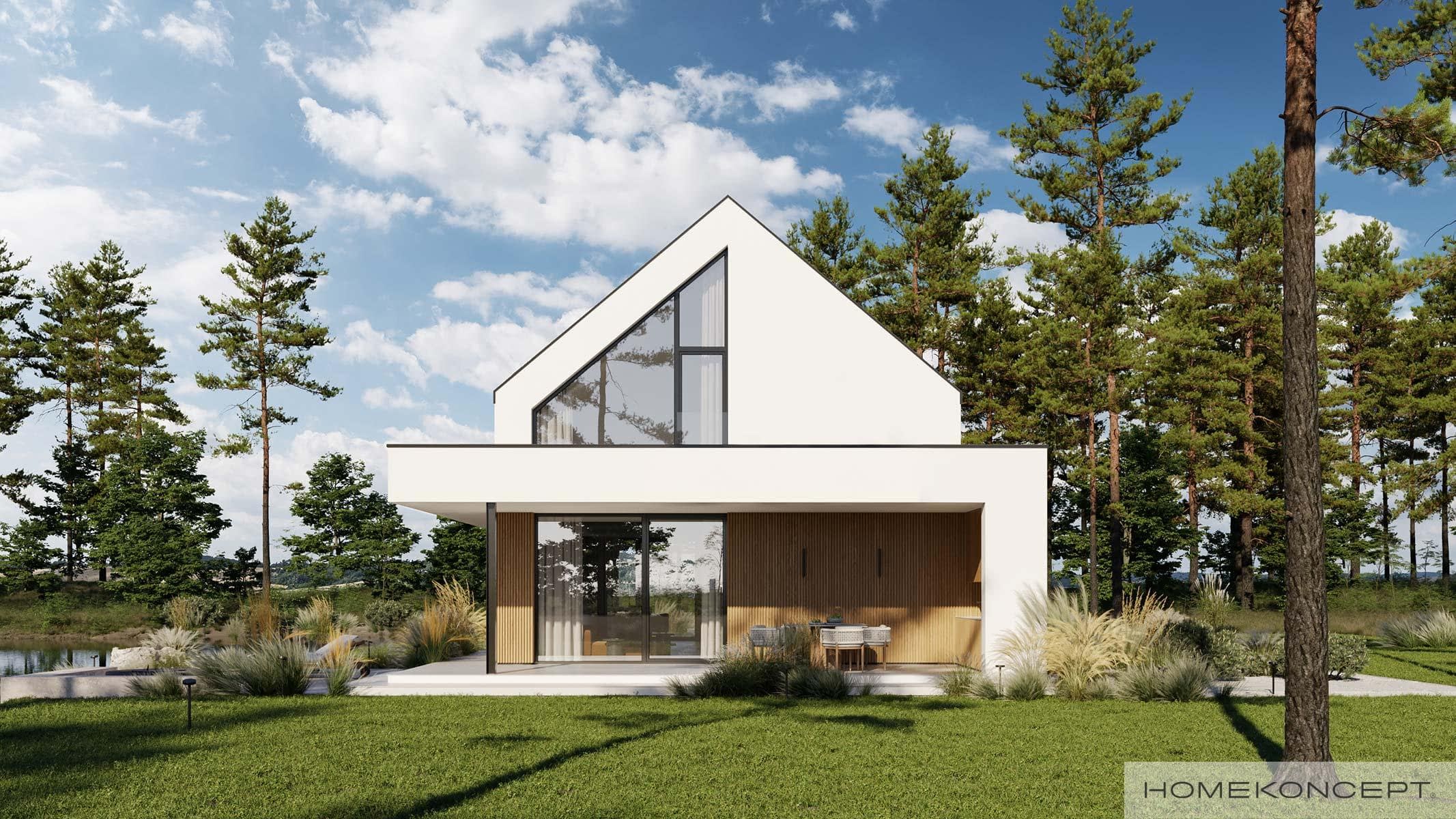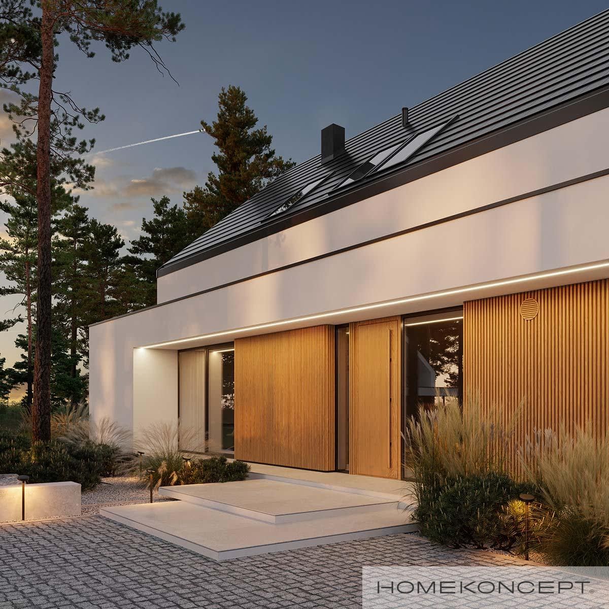 Elewacja: tynk silikonowy połączony z deską elewacyjną lamelową