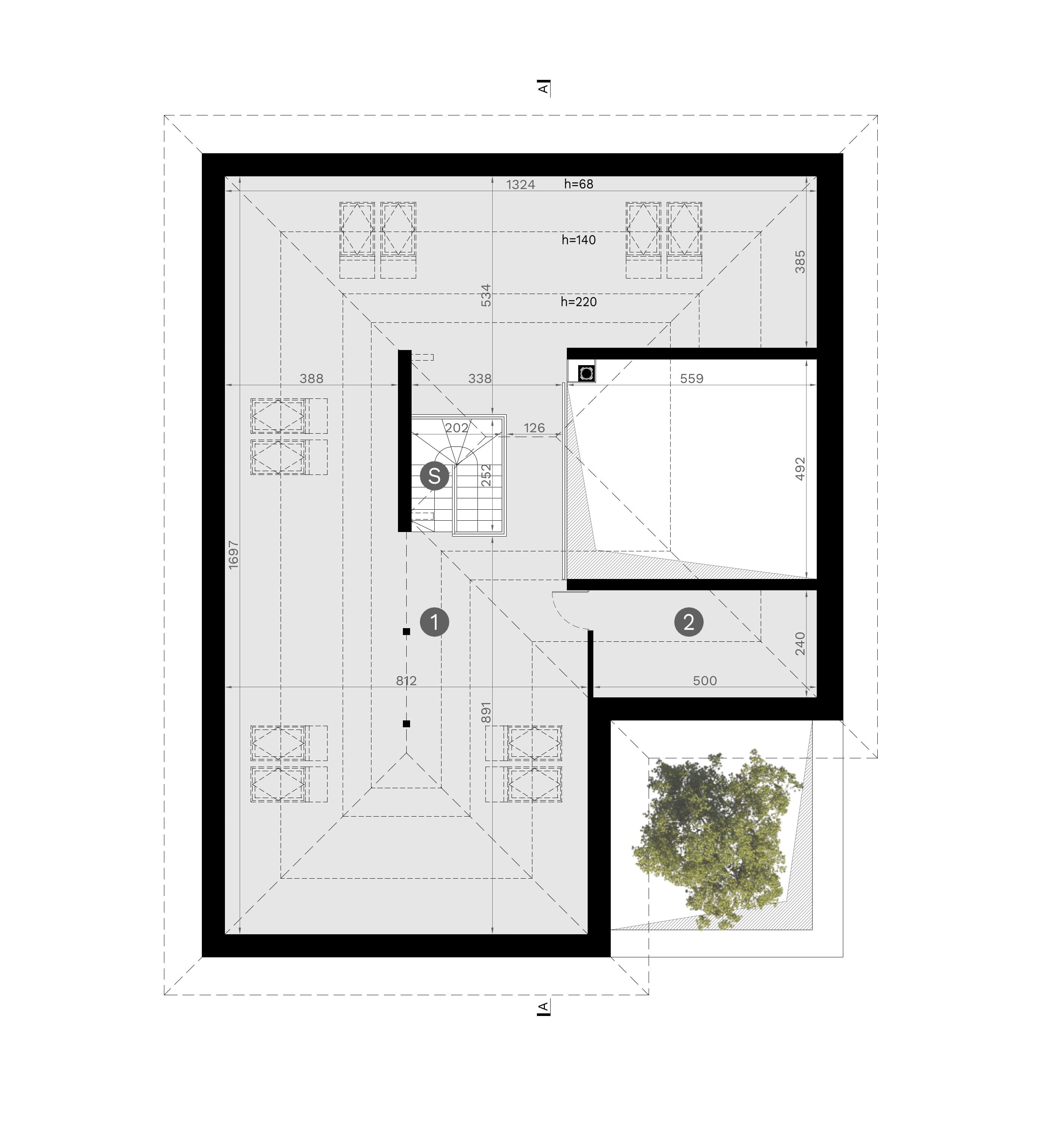 - rzut dachu i więźby dachowej,