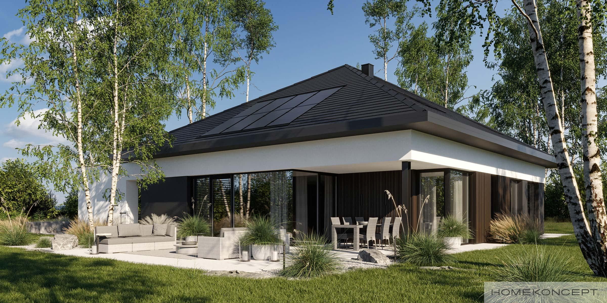 Dach: wielospadowy kryty dachówką ceramiczną lub cementową swissporTON wraz z systemem fotowoltaicznym SunLACE, okna dachowe FAKRO