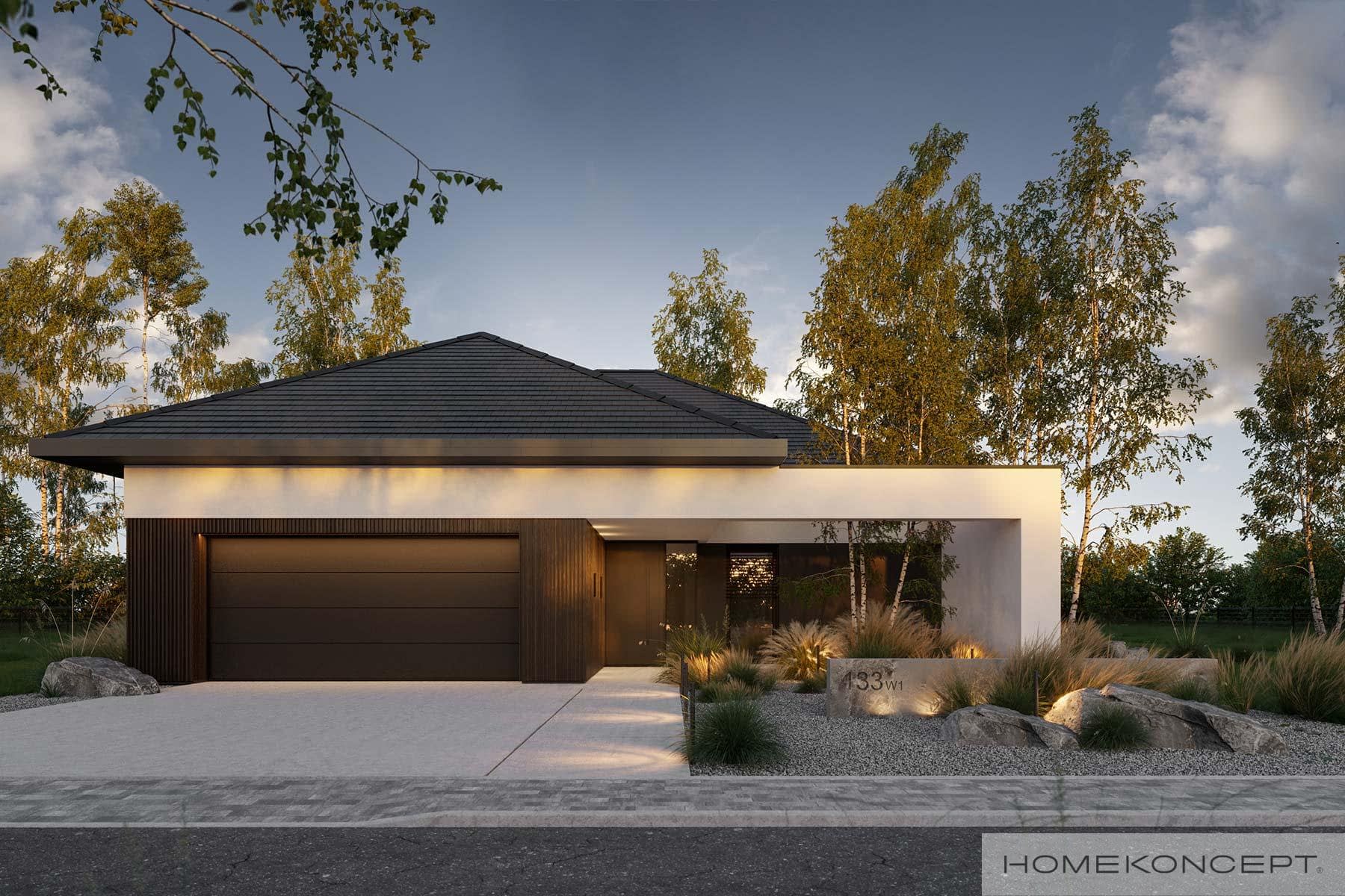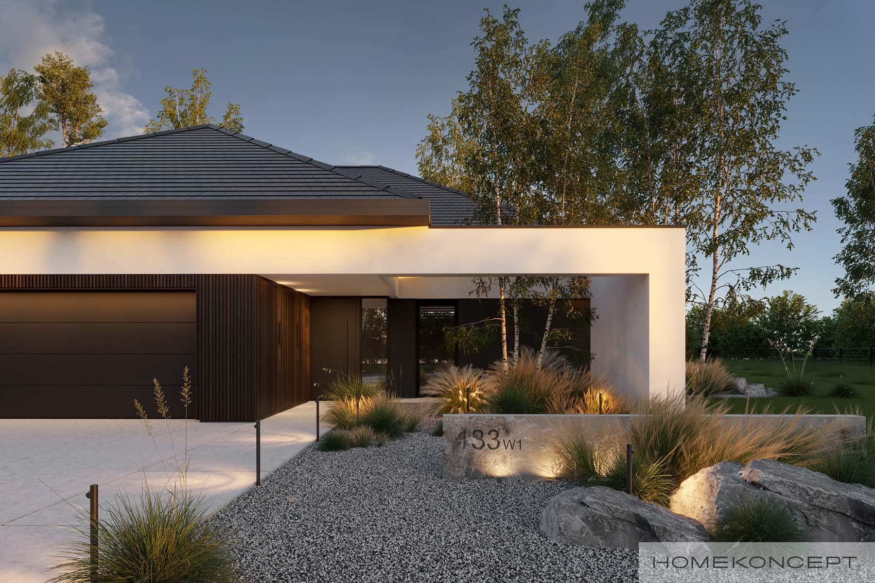 Elewacja: tynk silikonowy połączony z deską elewacyjną lamelową