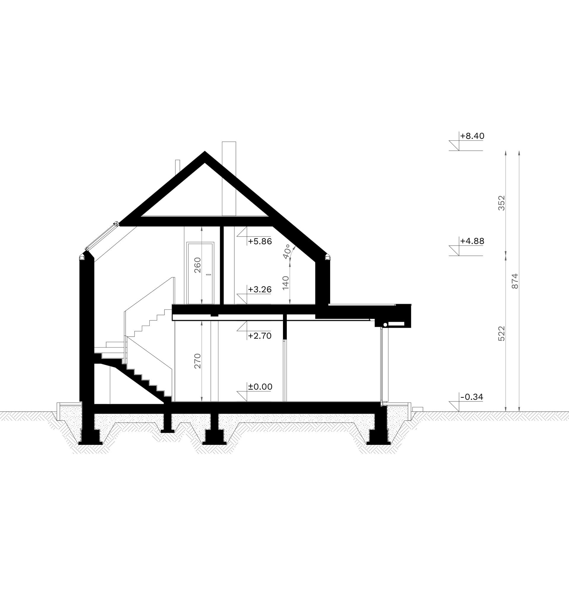 - wszystkie niezbędne przekroje przez całość oraz charakterystyczne fragmenty budynku,