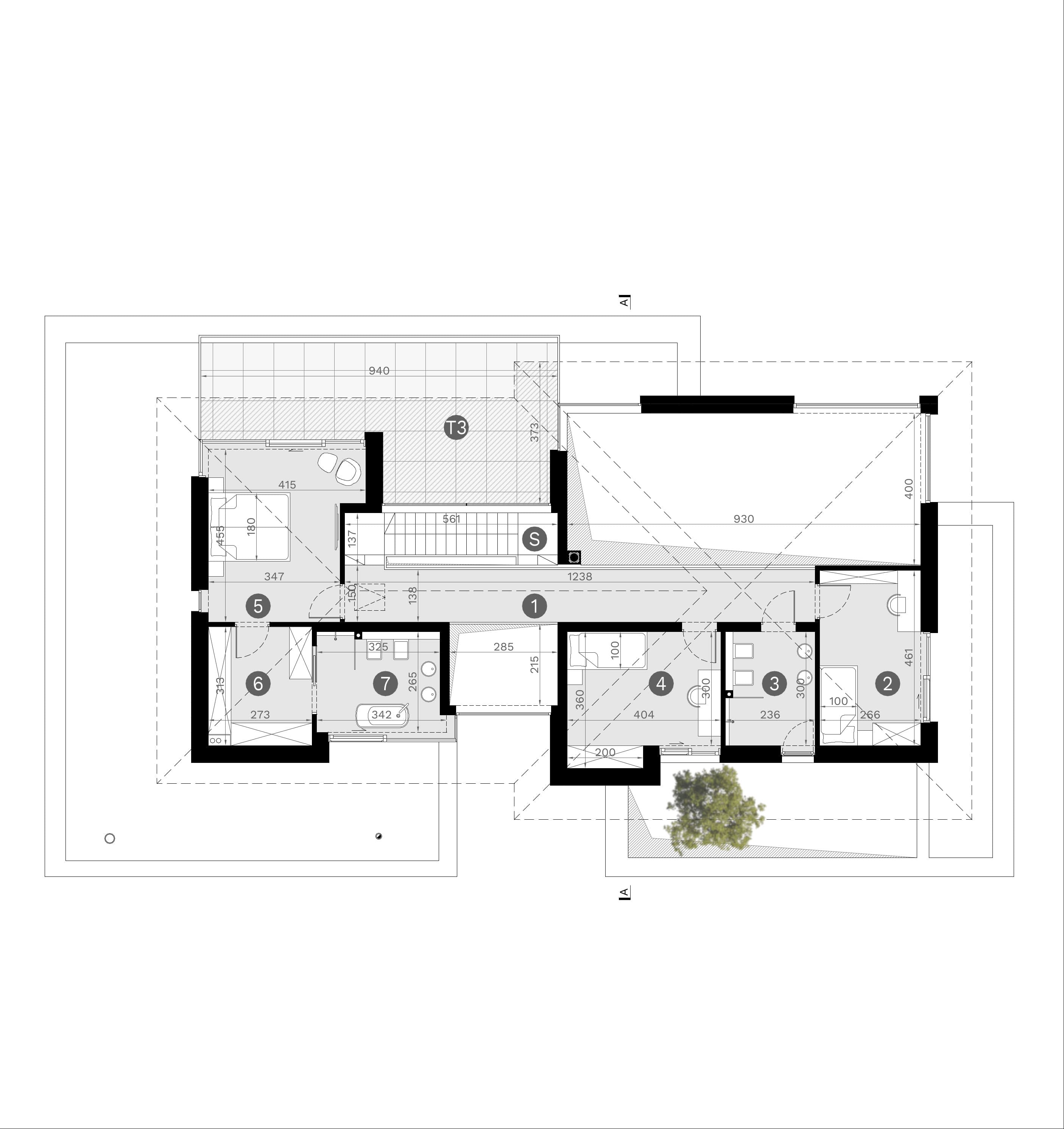 - rzut dachu i więźby dachowej,