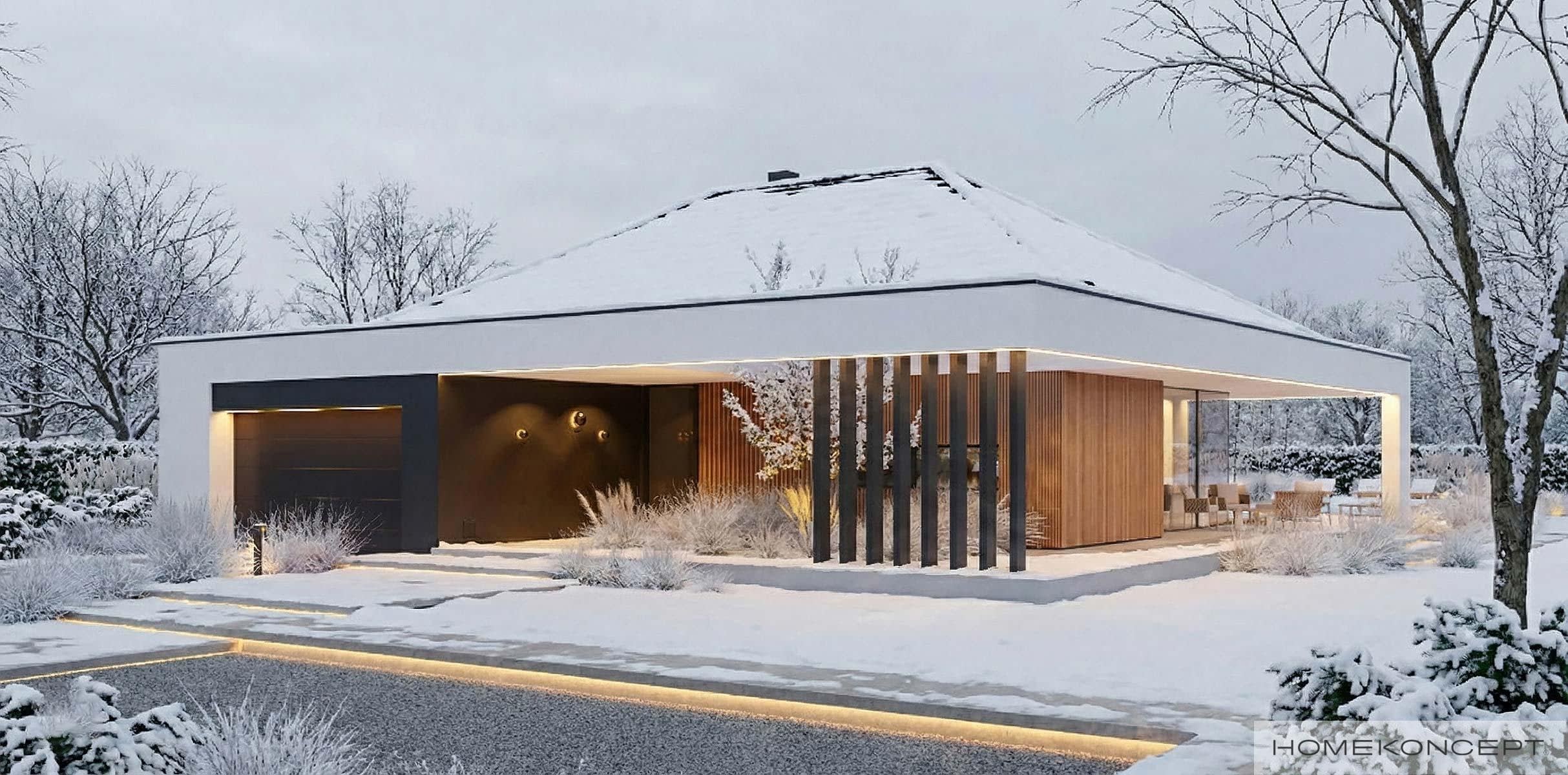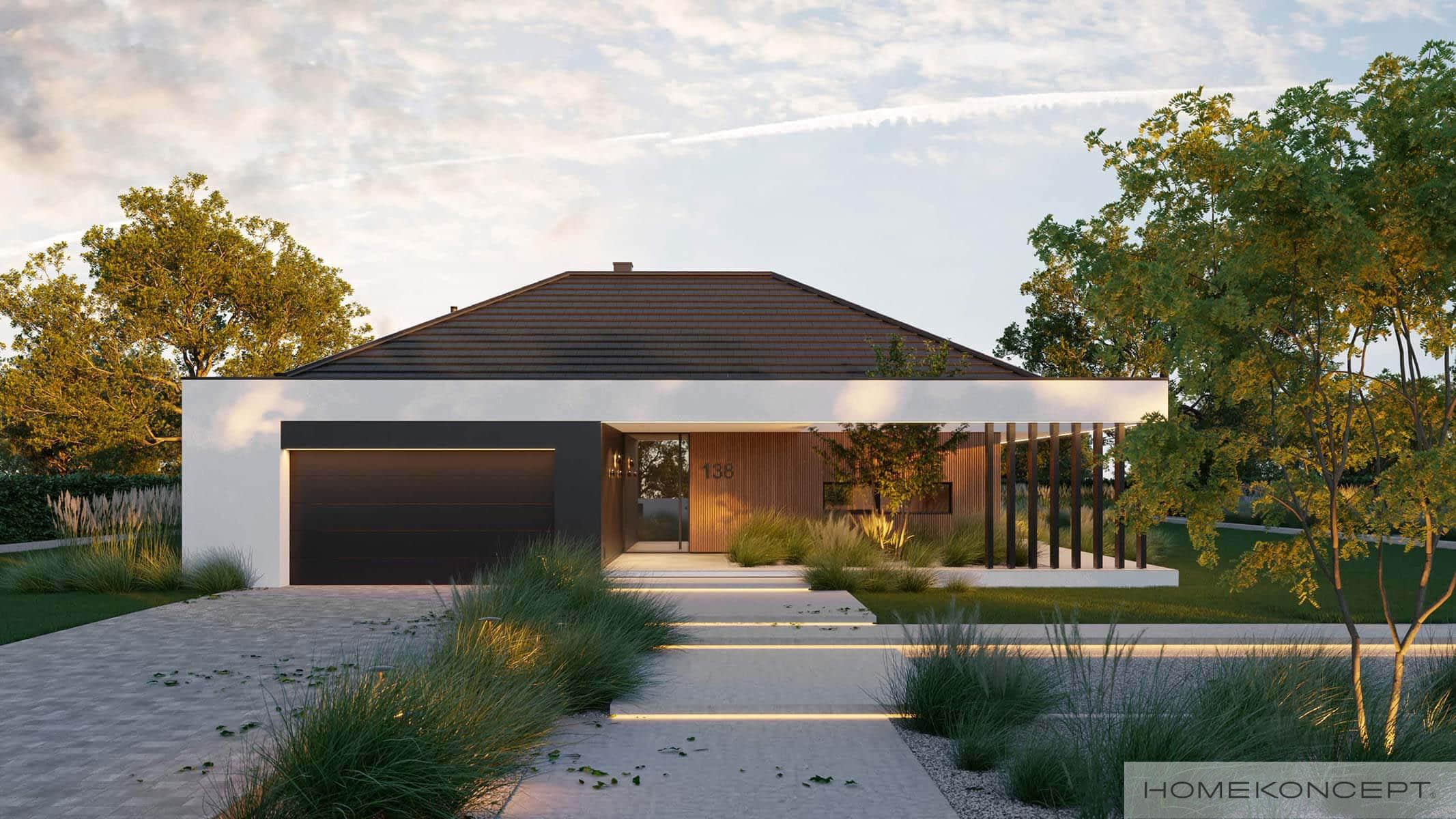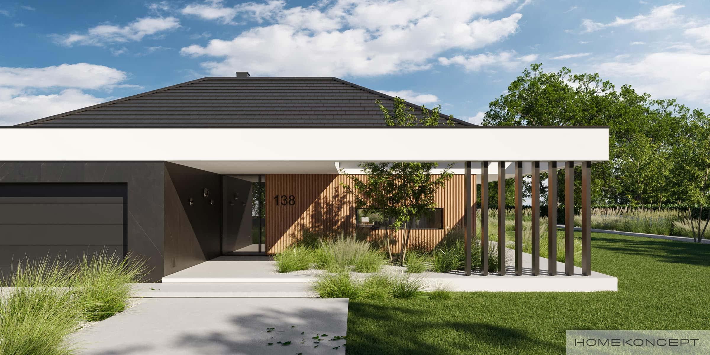 Dach: czterospadowy kryty dachówką ceramiczną lub cementową swissporTON, stropodach pełny kryty membraną EPDM, okna dachowe FAKRO
