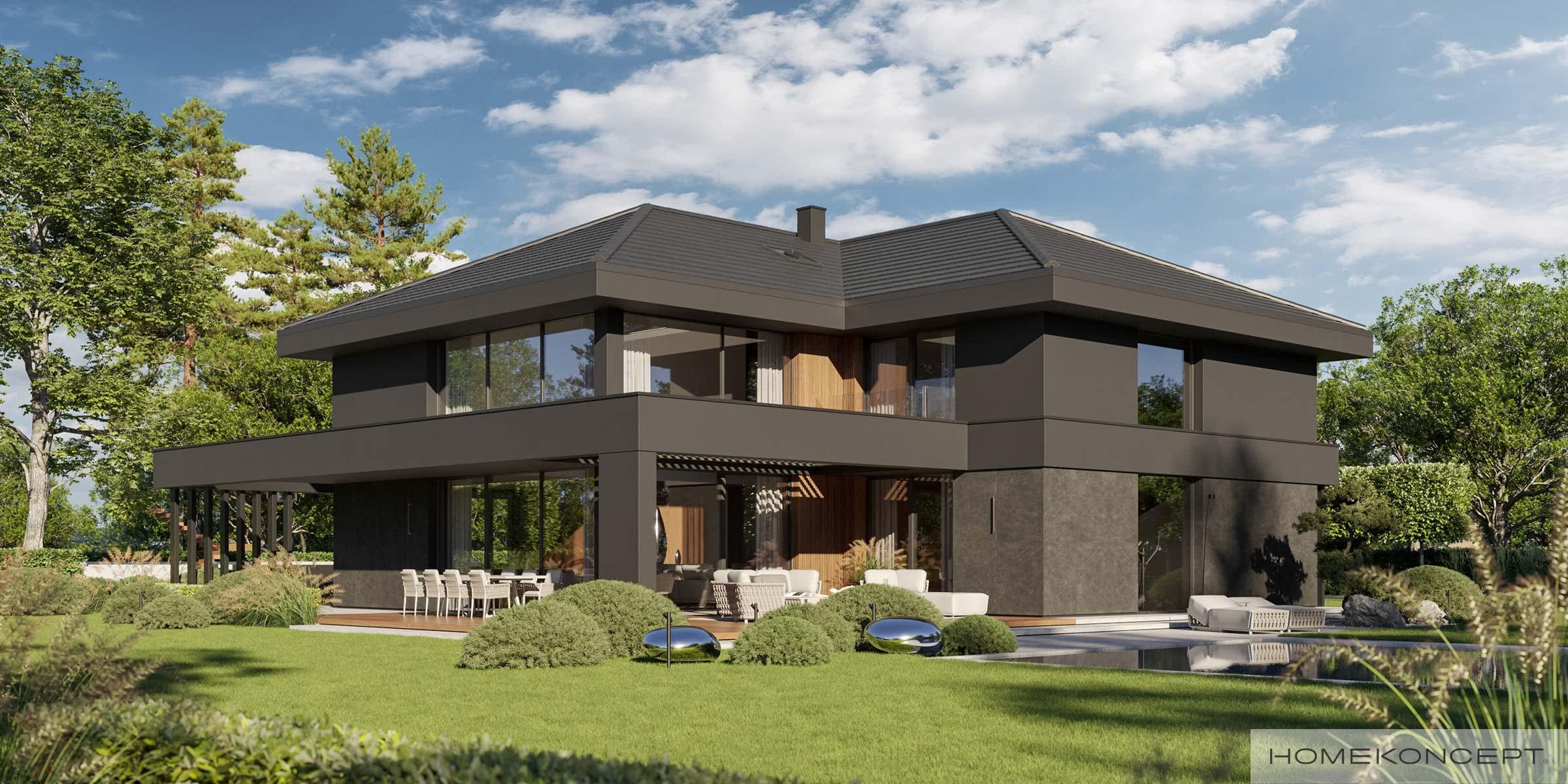 Dach: czterospadowy kryty dachówką ceramiczną lub cementową swissporTON, stropodach pełny kryty membraną EPDM