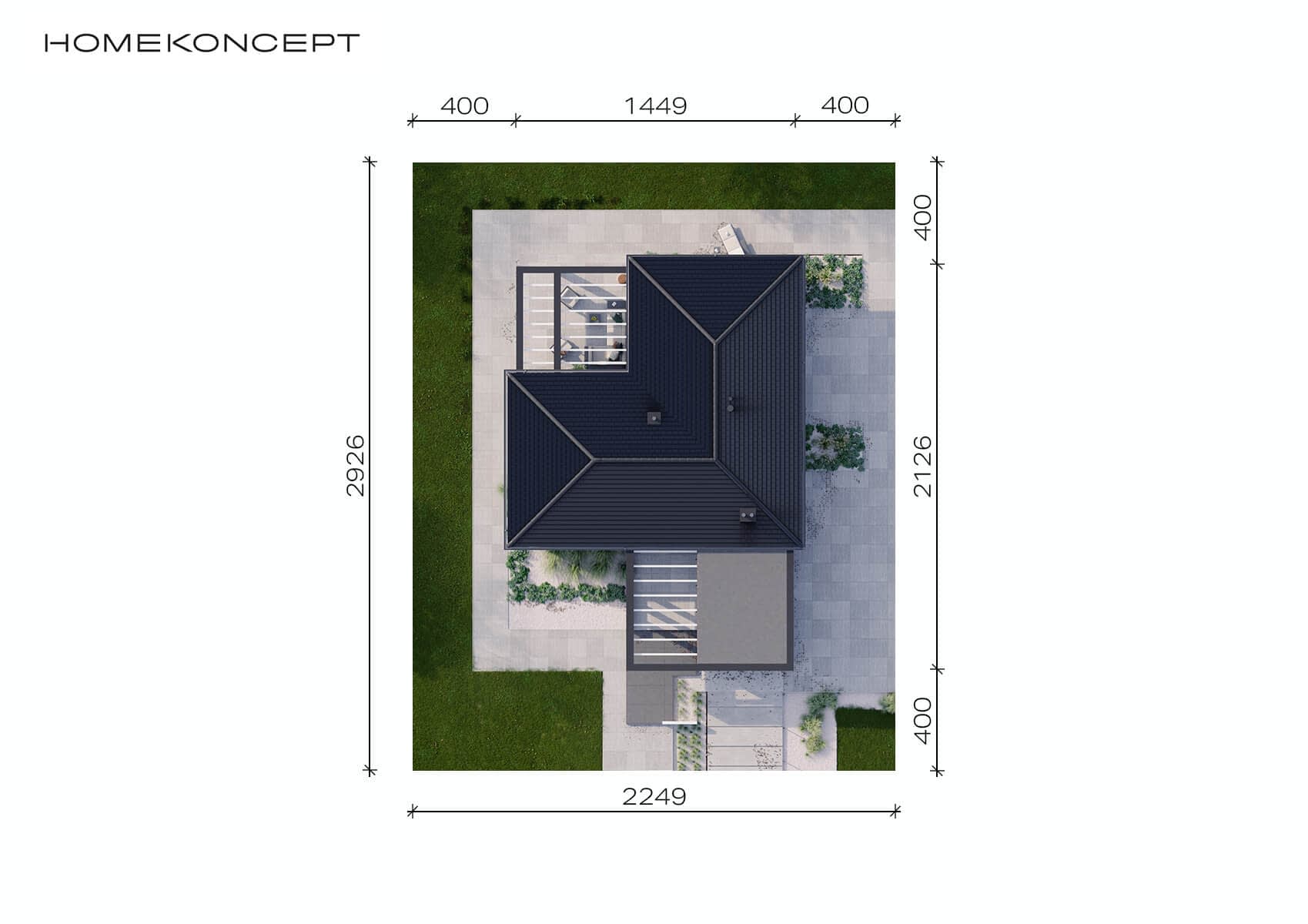 - Szerokość domu14.75 m