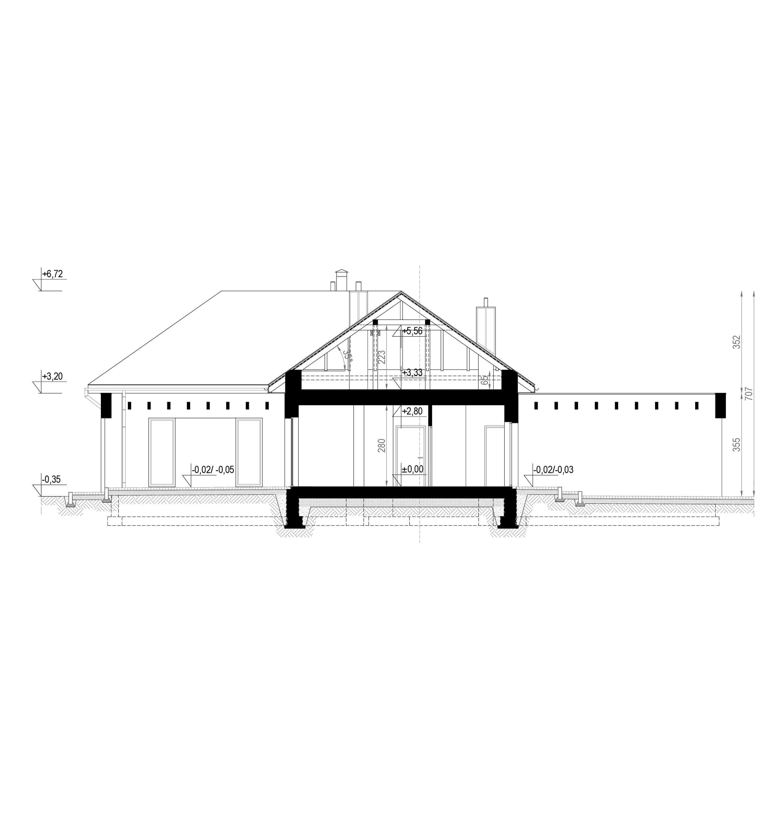 - rzut dachu i więźby dachowej,