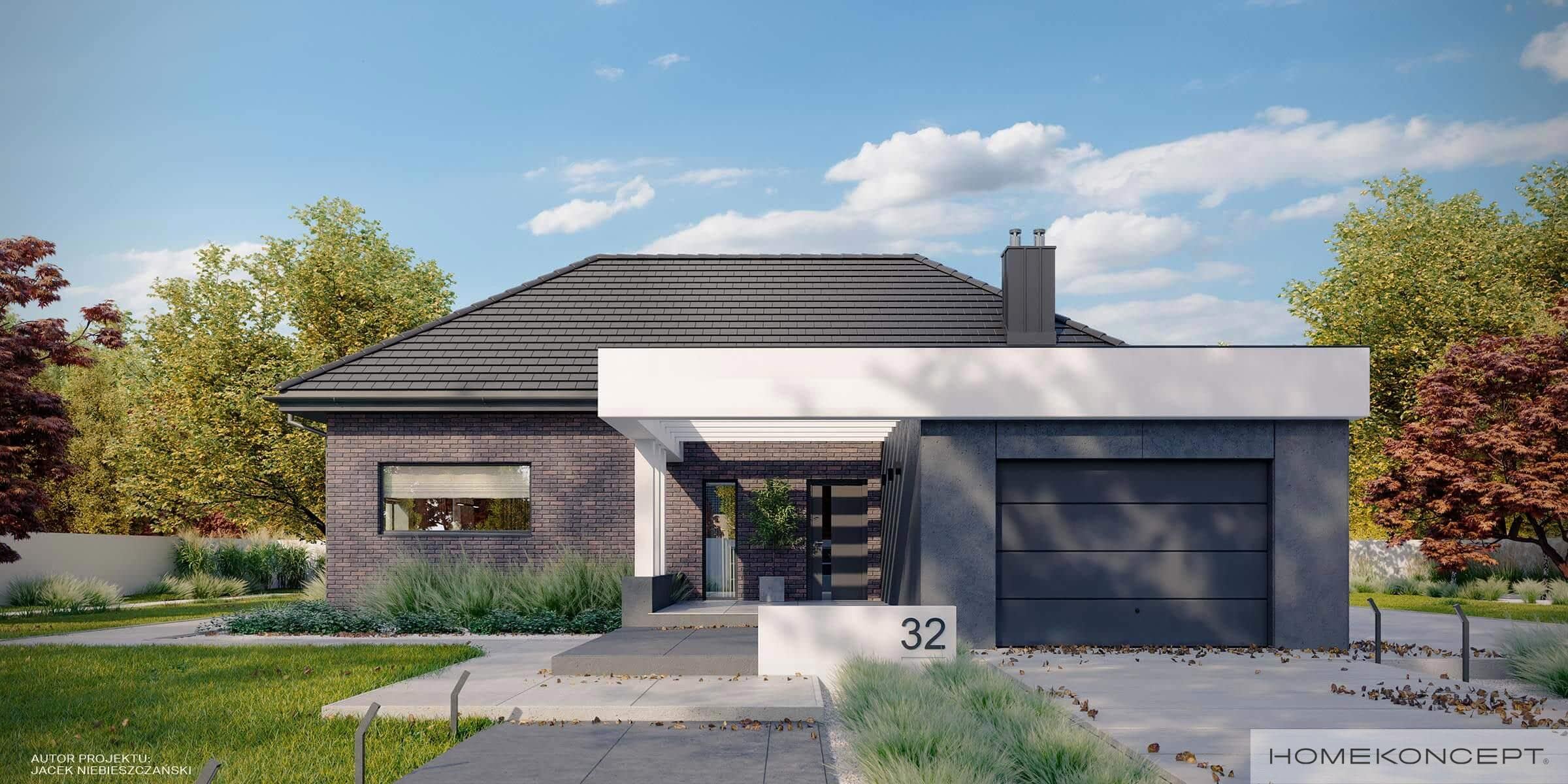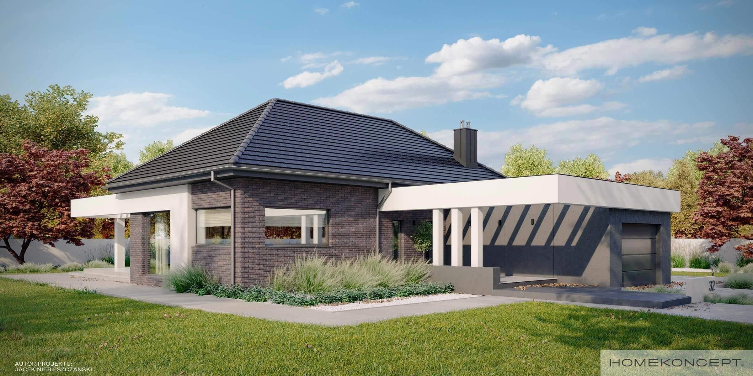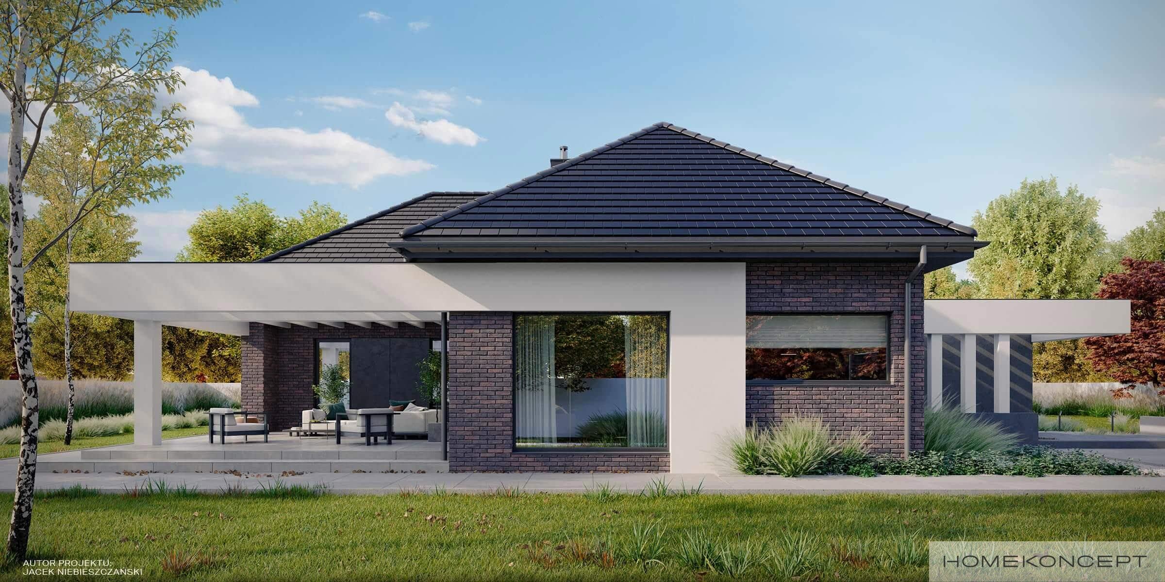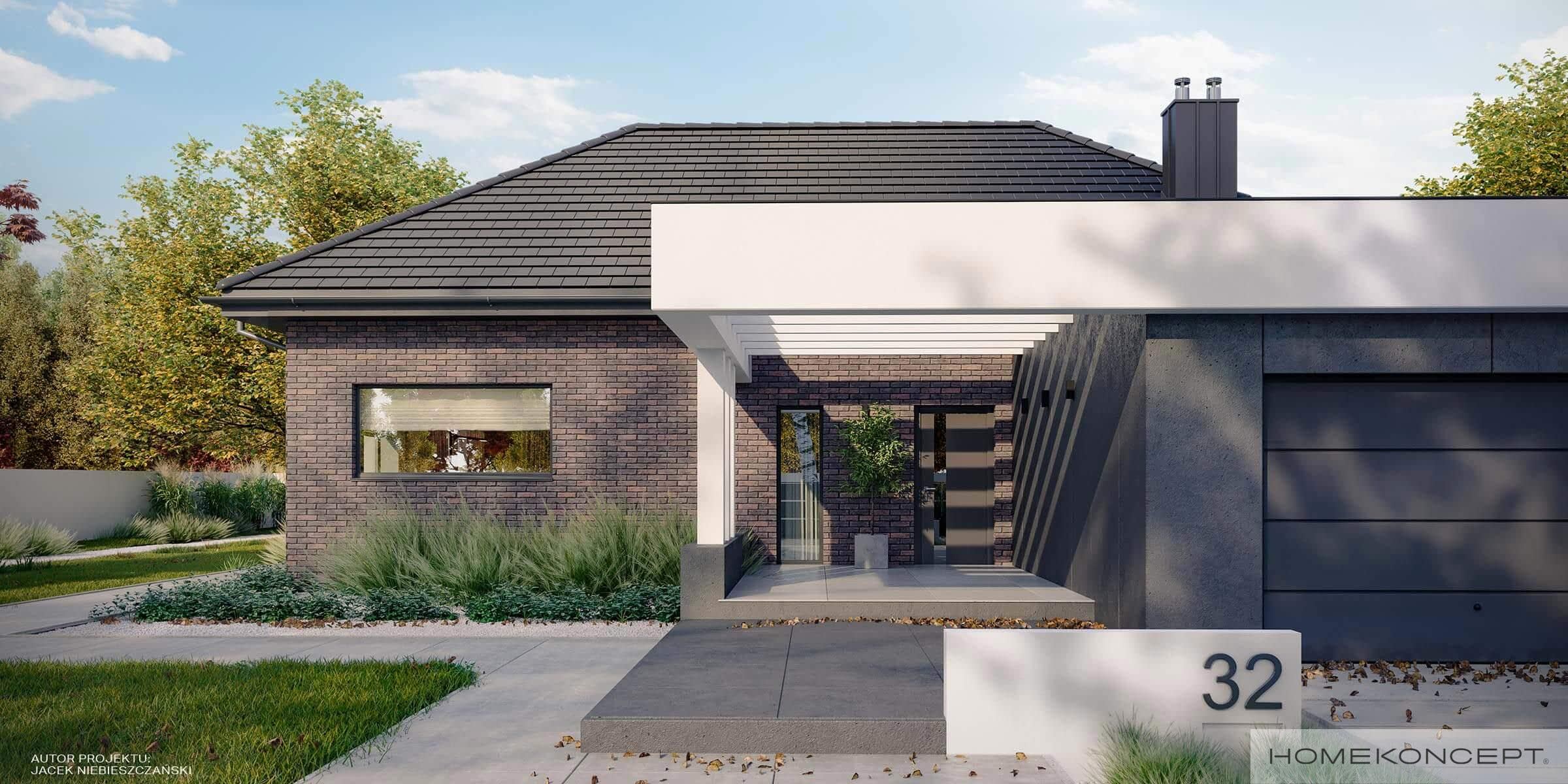 Elewacja: cegła klinkierowa połączona z tynkiem silikonowym