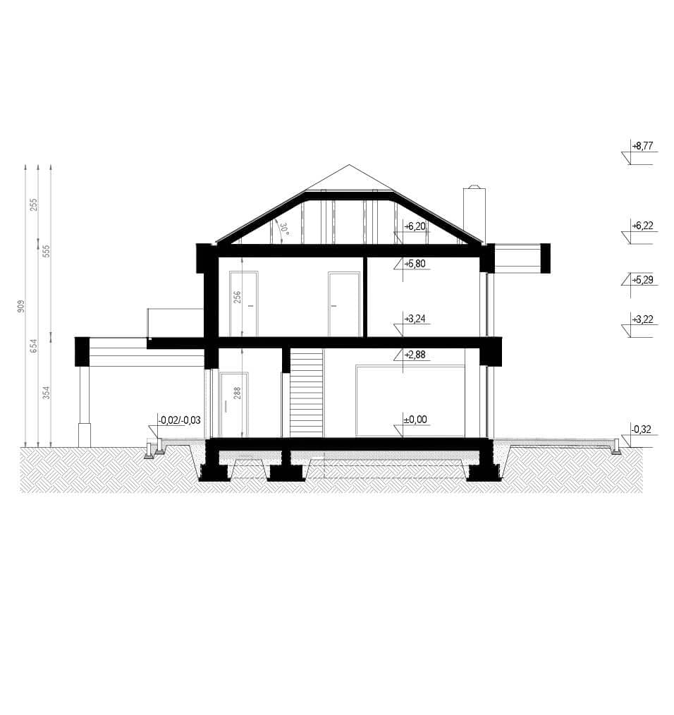 - wszystkie niezbędne przekroje przez całość oraz charakterystyczne fragmenty budynku,