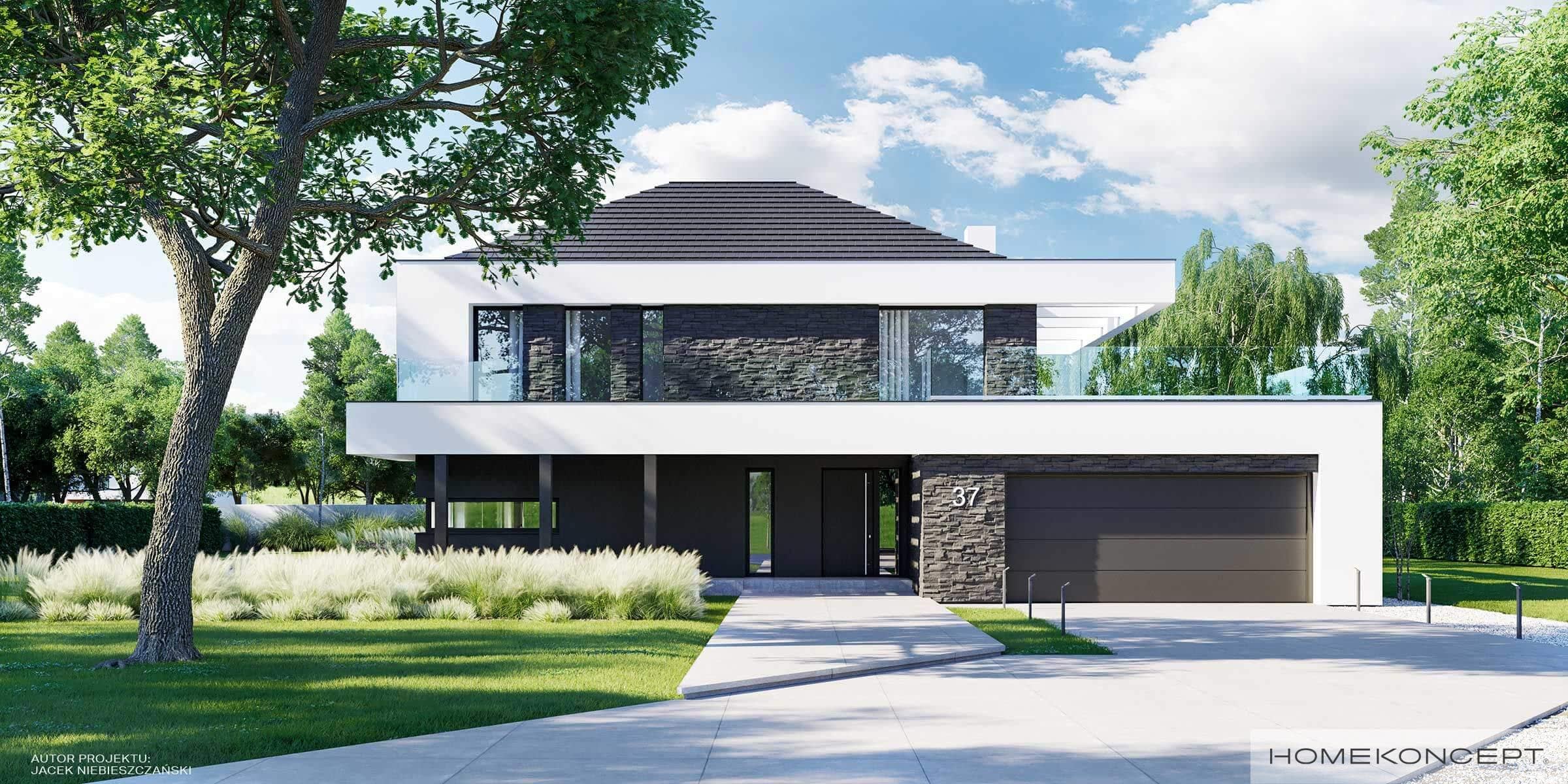 Elewacja: kamień elewacyjny 22PM RAMZES firmy EL-POL Hurtownia Kamienia połączony z tynkiem