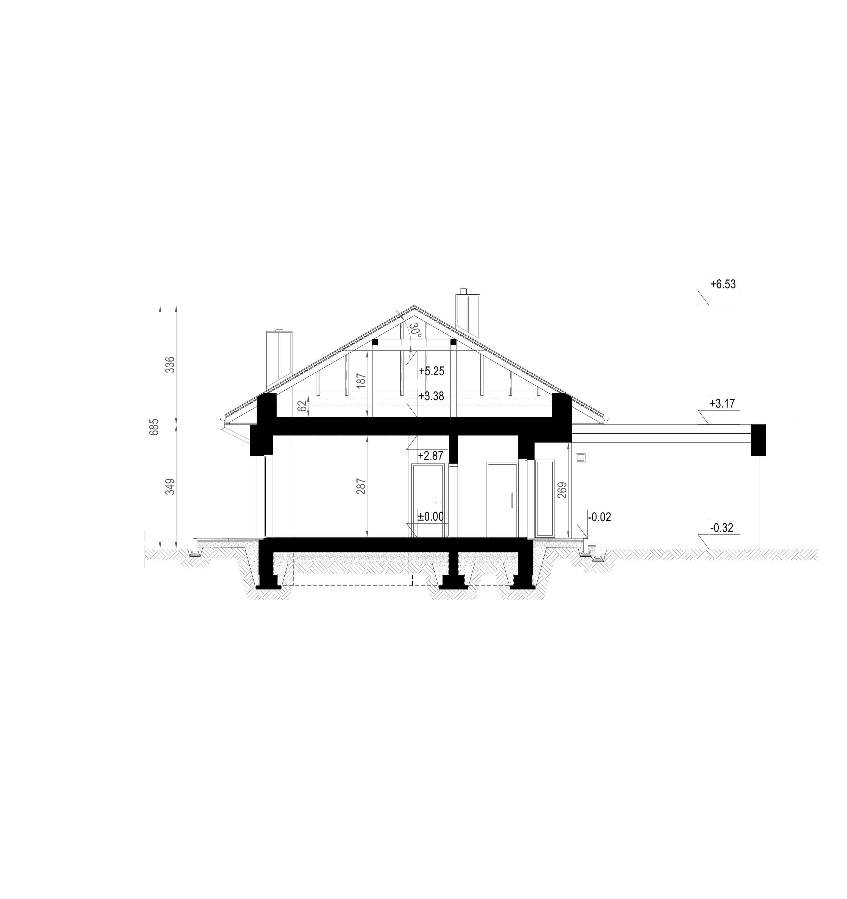 - rzut dachu i więźby dachowej,