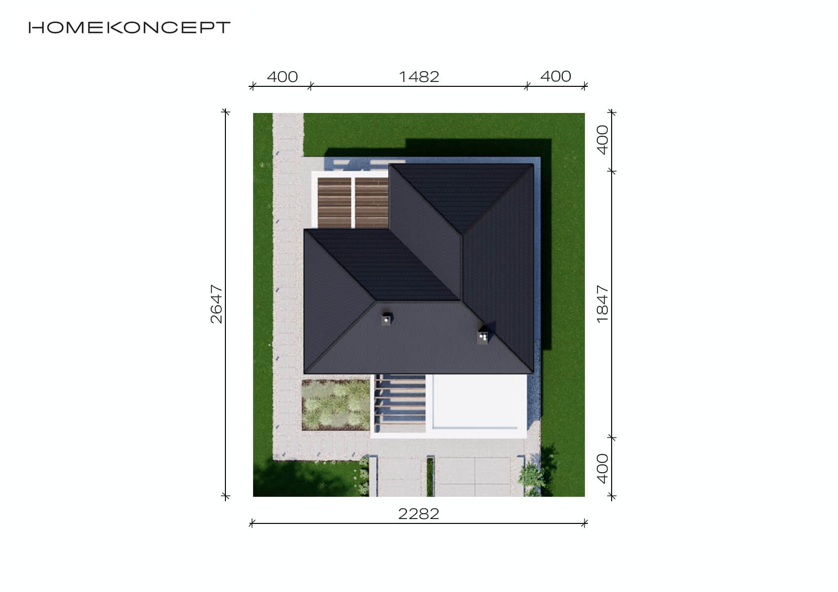 - Minimalne wymiary działki26.47 x 22.82m