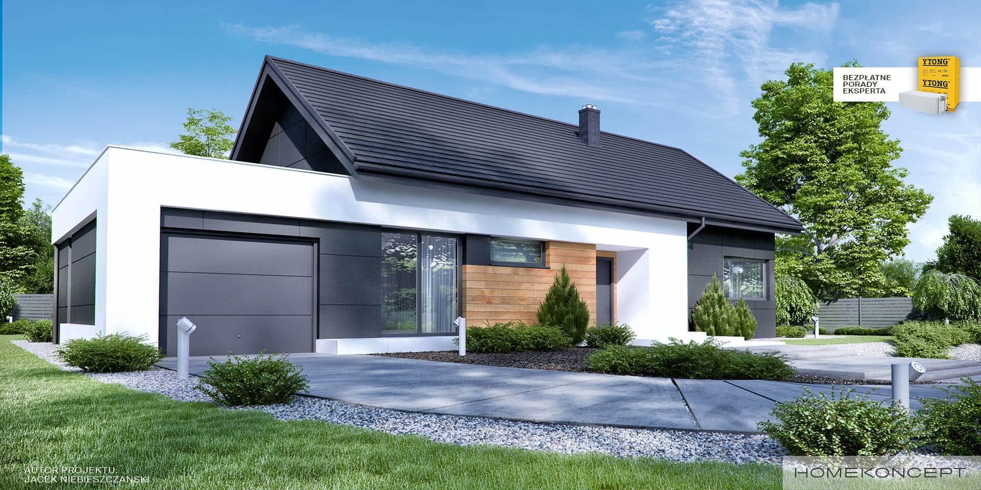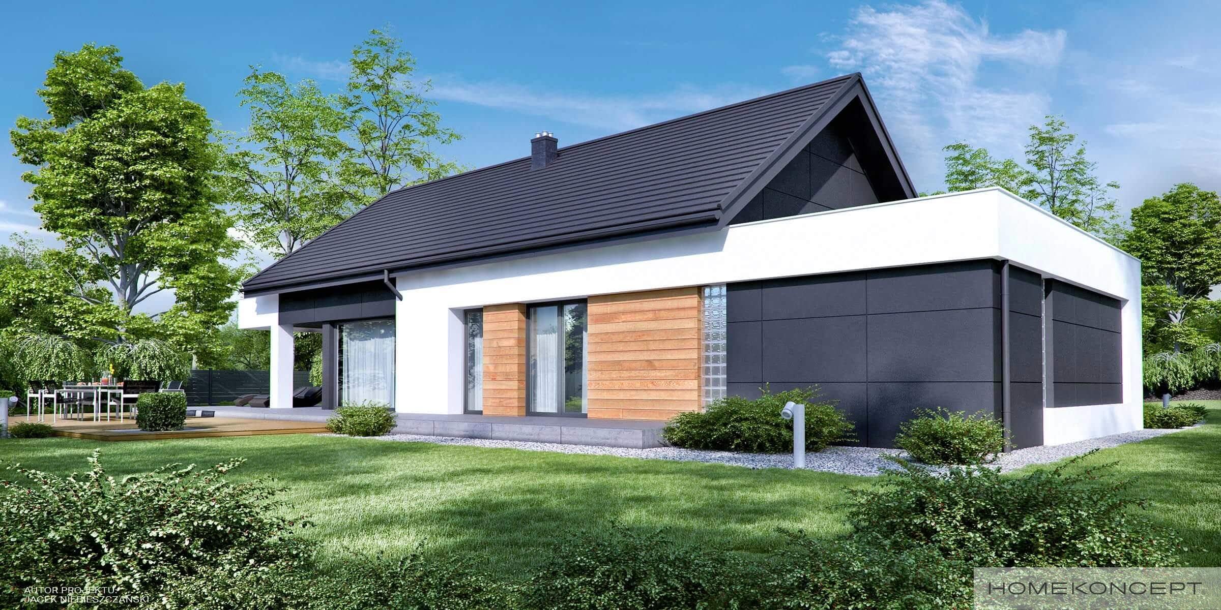 Elewacja: tynk silikonowy + deski elewacyjne - modrzew syberyjski