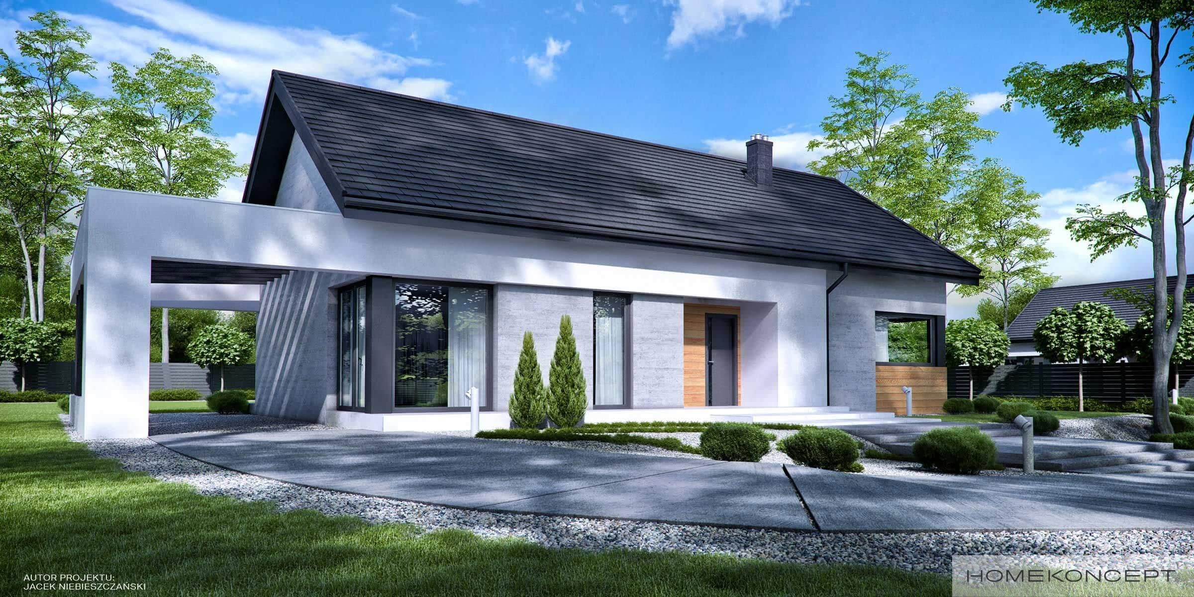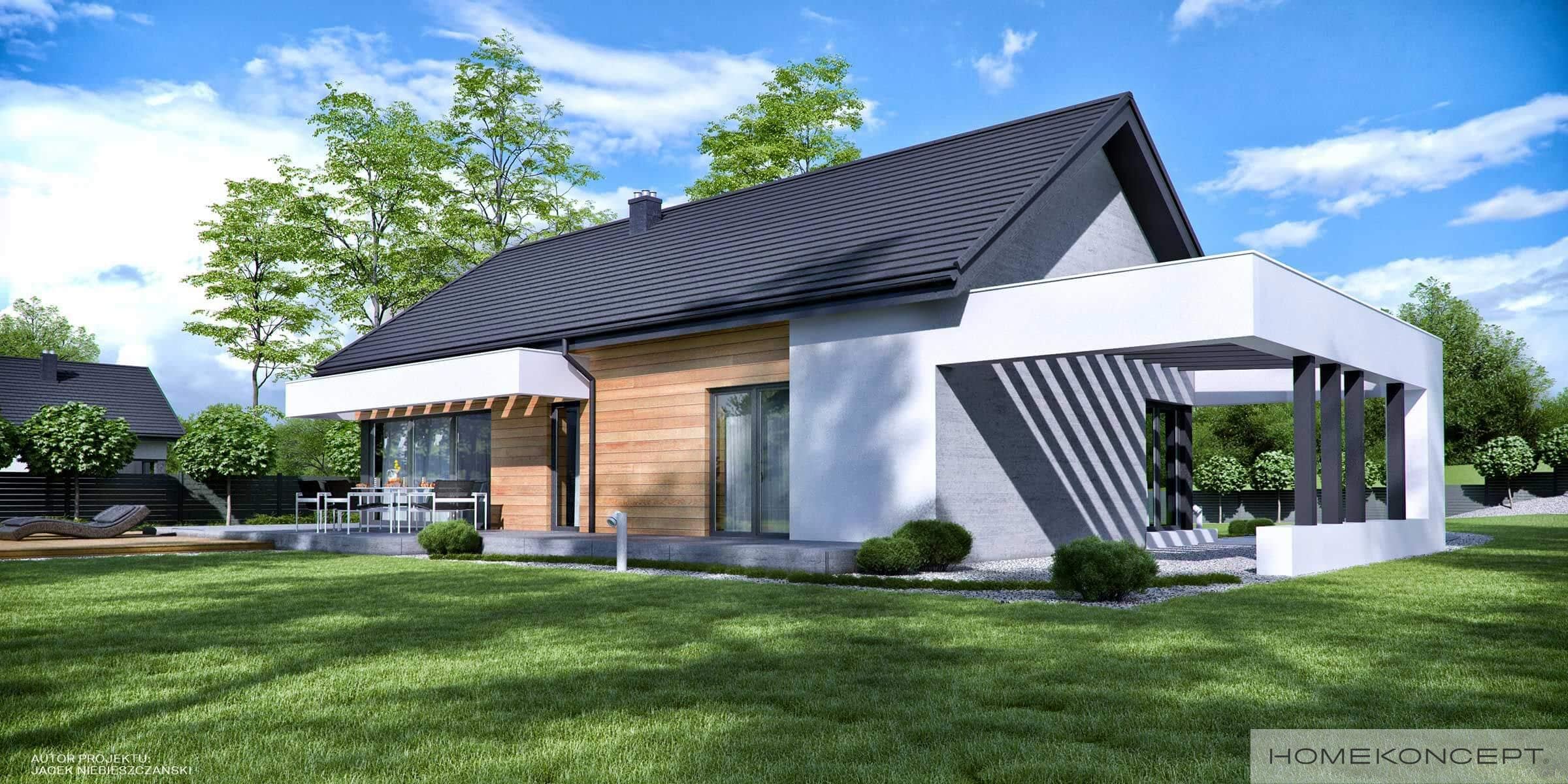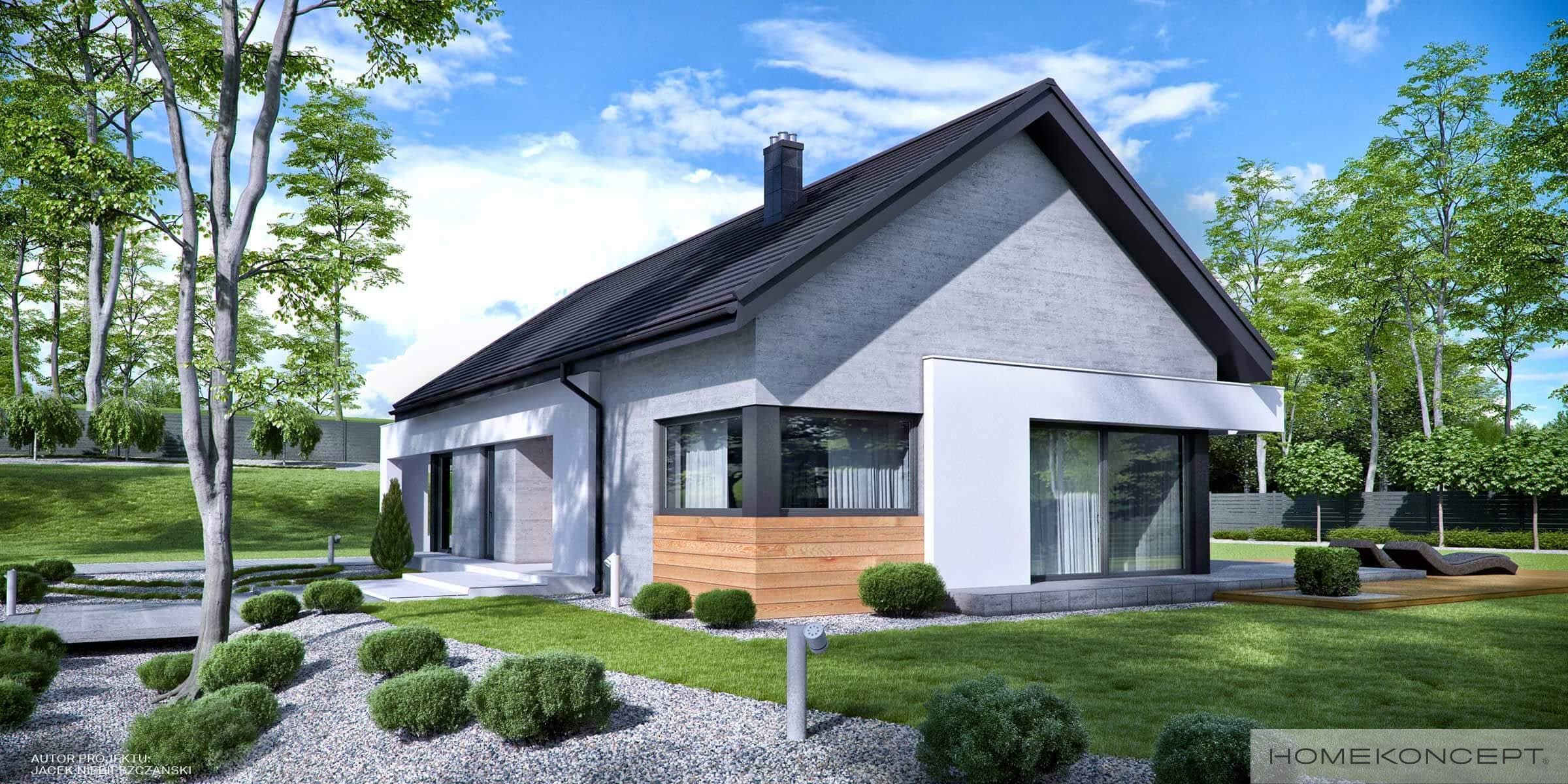 Elewacja: tynk silikonowy połączony z deskami elewacyjnymi - modrzew syberyjski