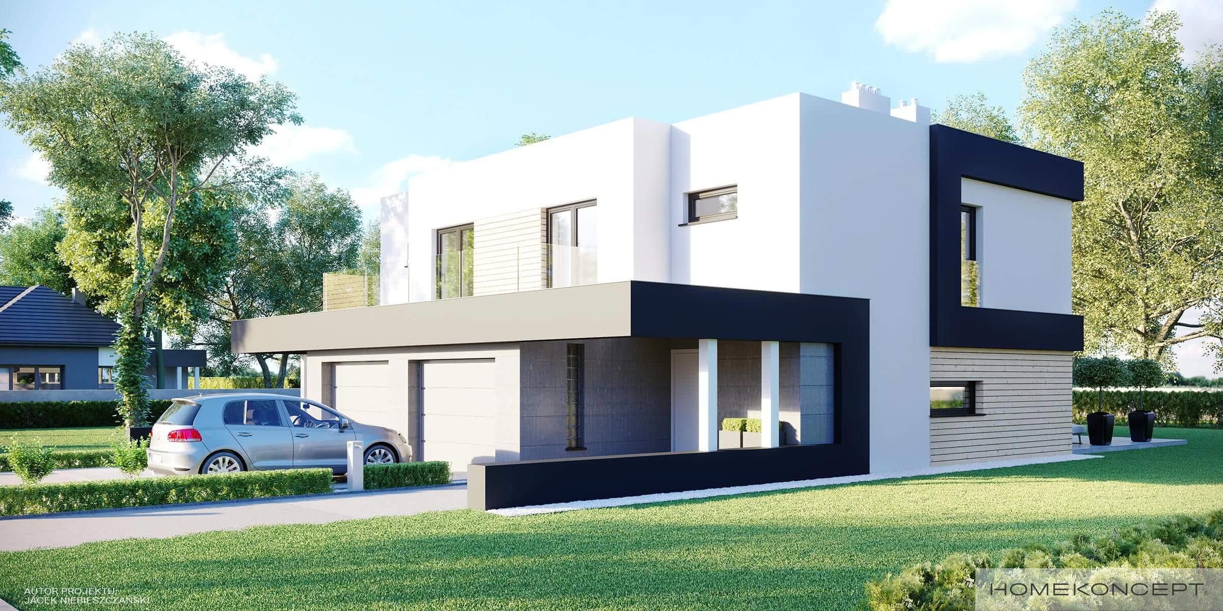 Elewacja: tynk silikonowy w połączeniu z deską elewacyjną - modrzew syberyjski