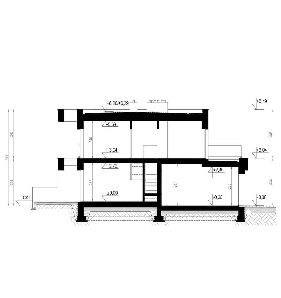 - wszystkie niezbędne przekroje przez całość oraz charakterystyczne fragmenty budynku,