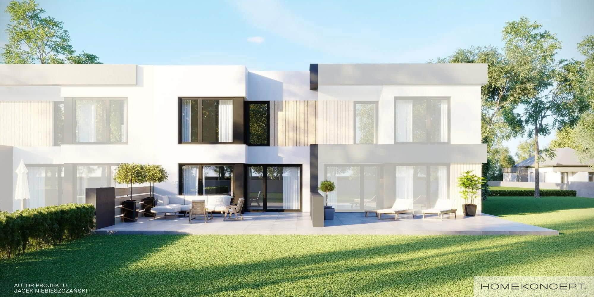 Elewacja: tynk silikonowy połączony z deską elewacyjną - modrzew syberyjski